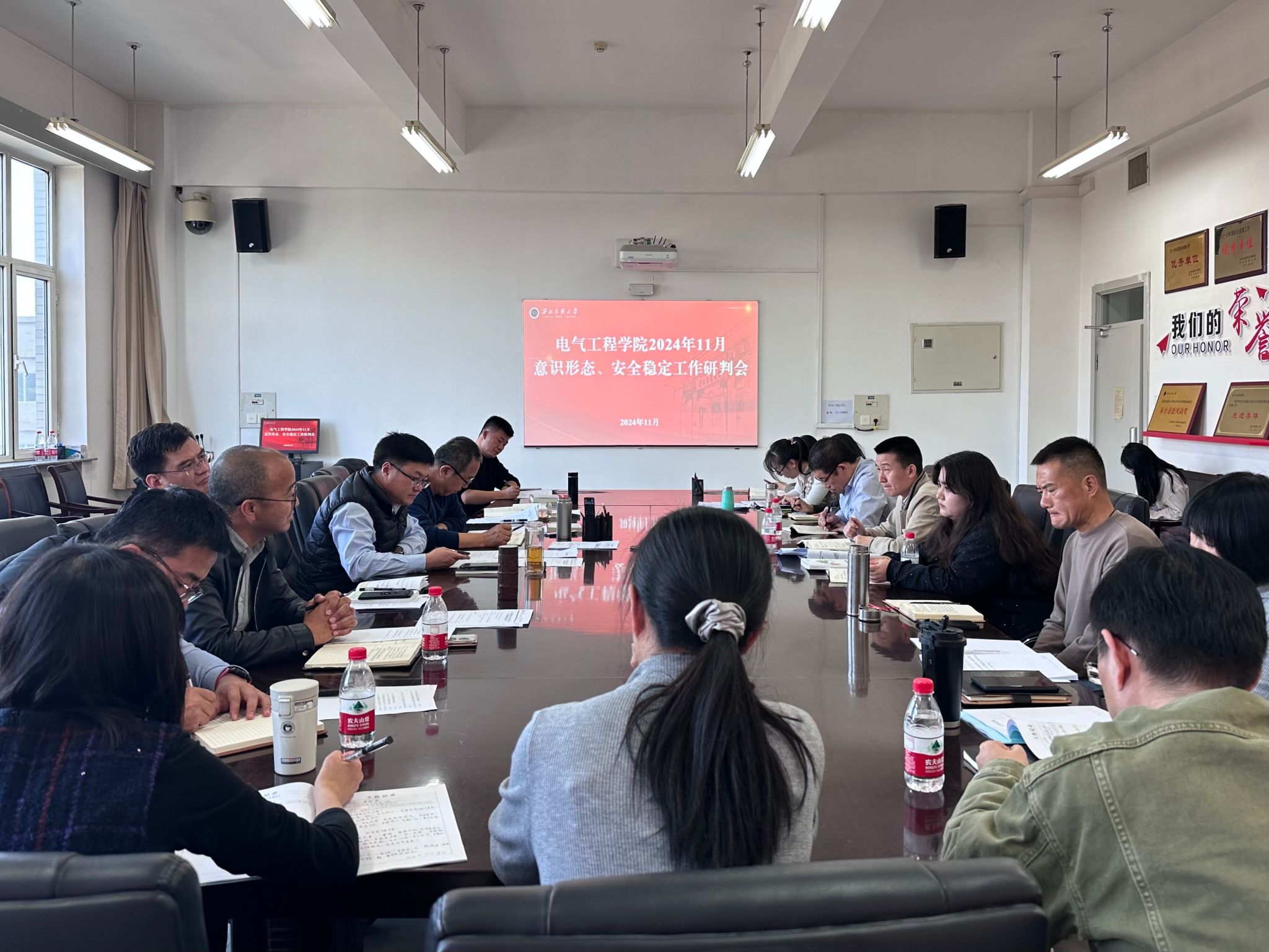11月7日,电气工程学院召开11月份意识形态和安全稳定工作分析研判会。学院处科级干部、系主任、实验室主任、党支部书记、辅导员等参加会议。党委书记王振国主持会议。
