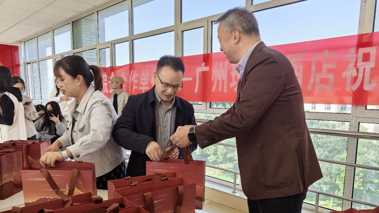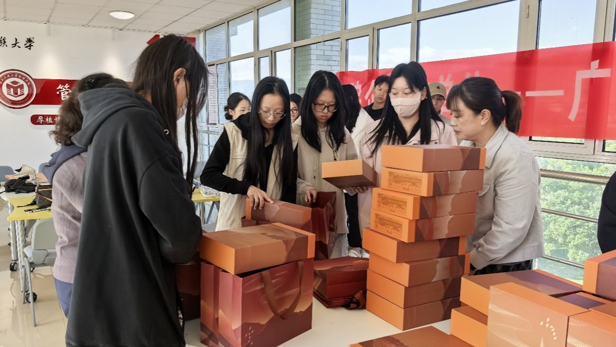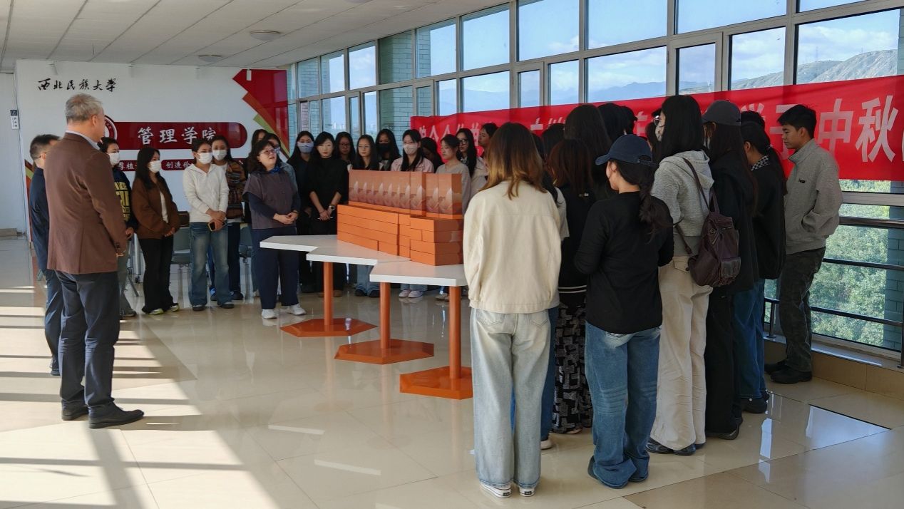 中秋佳节来临之际,管理学院收到一份跨越两千公里的特殊礼物——广州瑰丽酒店为2023级旅游管理、航空服务艺术与管理专业同学寄来的300个六周年定制月饼。9月23日上午,管理学院在榆中校区致善楼举行“中秋团圆一家亲”心意传递活动,学院负责人向党、马明辉、米尔古丽、谢宗棠将酒店月饼礼盒一一递到学生手中,转达企业的节日问候,祝福同学们学业有成、前程似锦,并勉励大家:记住这份远道而来的甜蜜,践行“厚植情怀、创造价值、服务社会”院训精神,掌握入职技能,锤炼履职本领,担当社会责任。