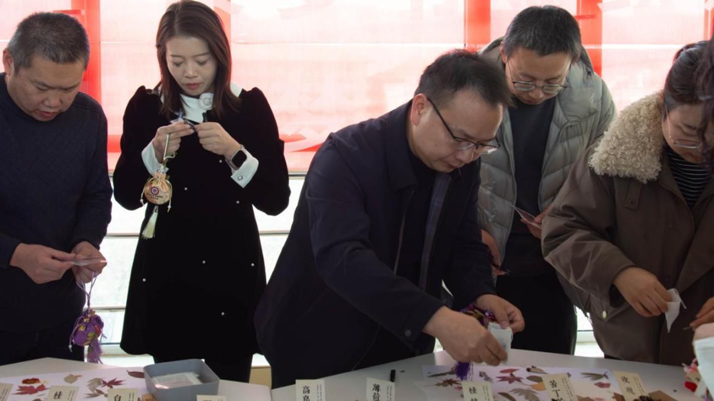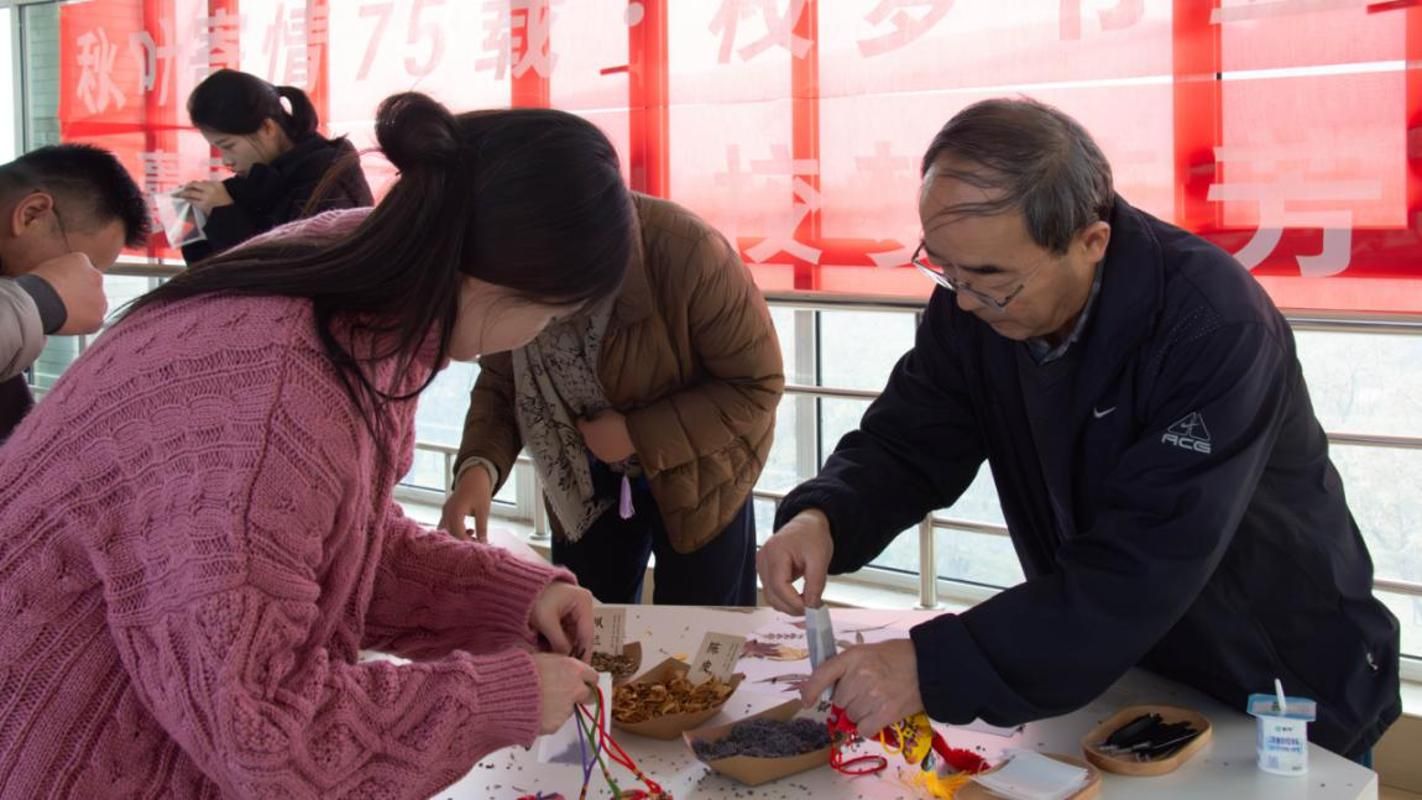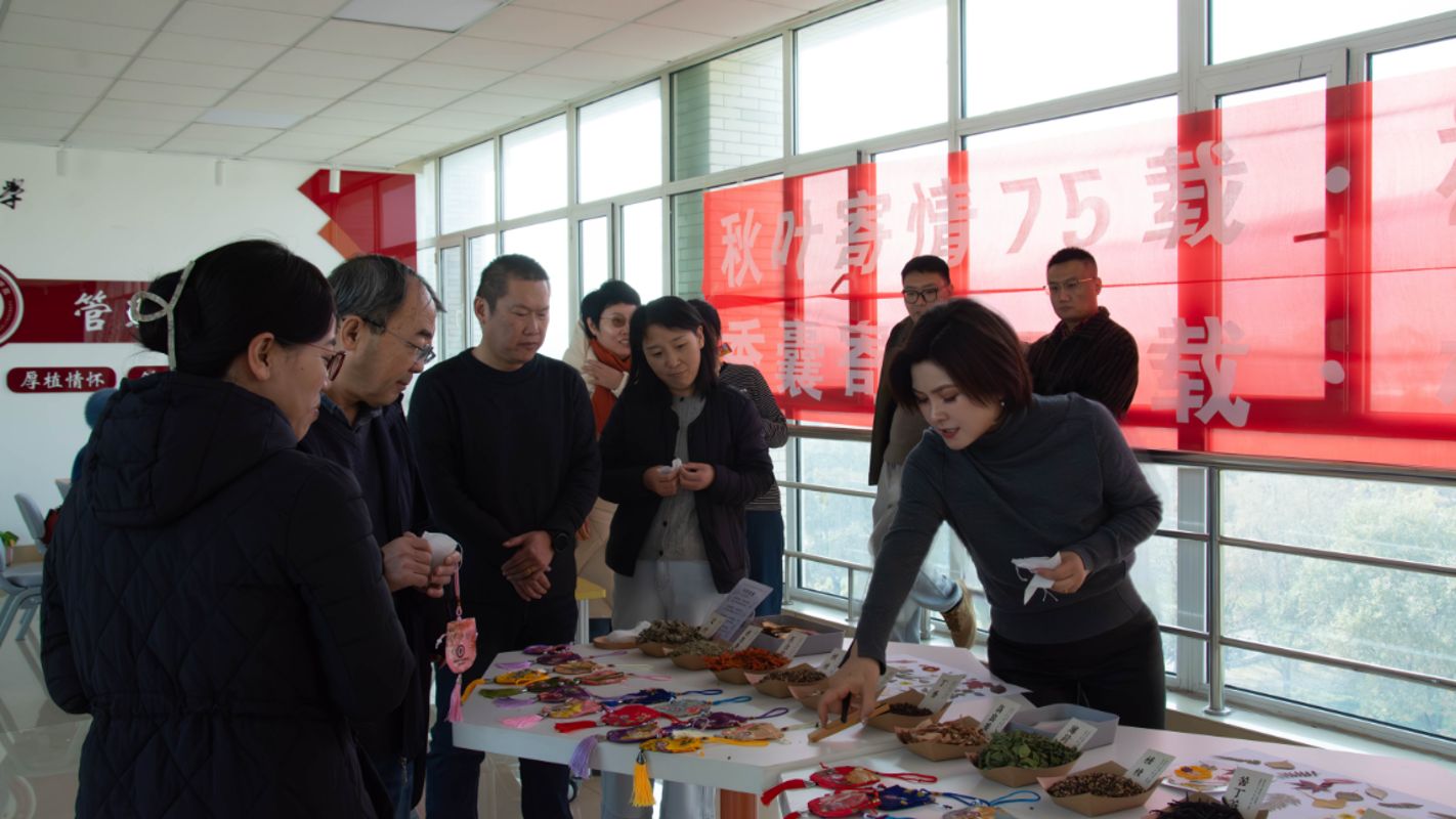 秋叶裁韵,香囊凝香。11月21日,管理学院以秋叶、香囊为媒,收集色彩丰富的秋叶,制作千年风雅的香囊,在榆中校区致善楼四楼大厅举办以“秋叶寄情75载,香囊凝心促发展”为主题的工会活动,学院教职员工参加。