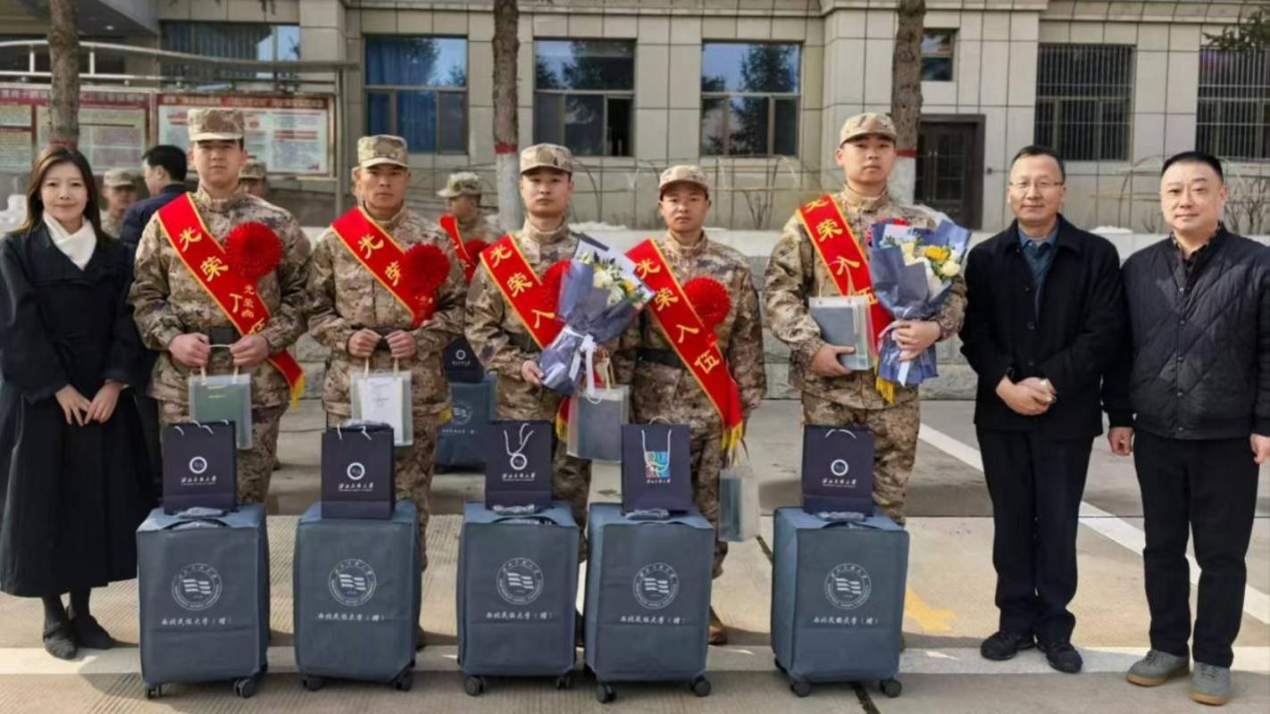 3月16日,管理学院张金平老师,广慧金通教育集团驻校工作处主任陈丽雯、班导师白雪松一同前往兰州市教导站,慰问即将奔赴绿色军营、投身国防事业的5名管院学子,以关怀传递期许,以寄语点燃热血,见证同学们以青春之名、践报国之志、铸忠诚军魂的荣光时刻。