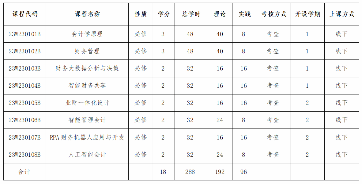 为适应数字经济与智能财务发展需要,智能会计微专业培养学生掌握会计学、大数据财务决策分析、人工智能技术、财务机器人应用等与智能会计相关的基本理论知识和关键技术,具有业财融合分析、智能财务系统应用、数据挖掘与决策支持的能力,能够在企业财务共享中心、会计师事务所、金融机构及政府部门胜任智能核算、财务分析、自动化等相关工作。