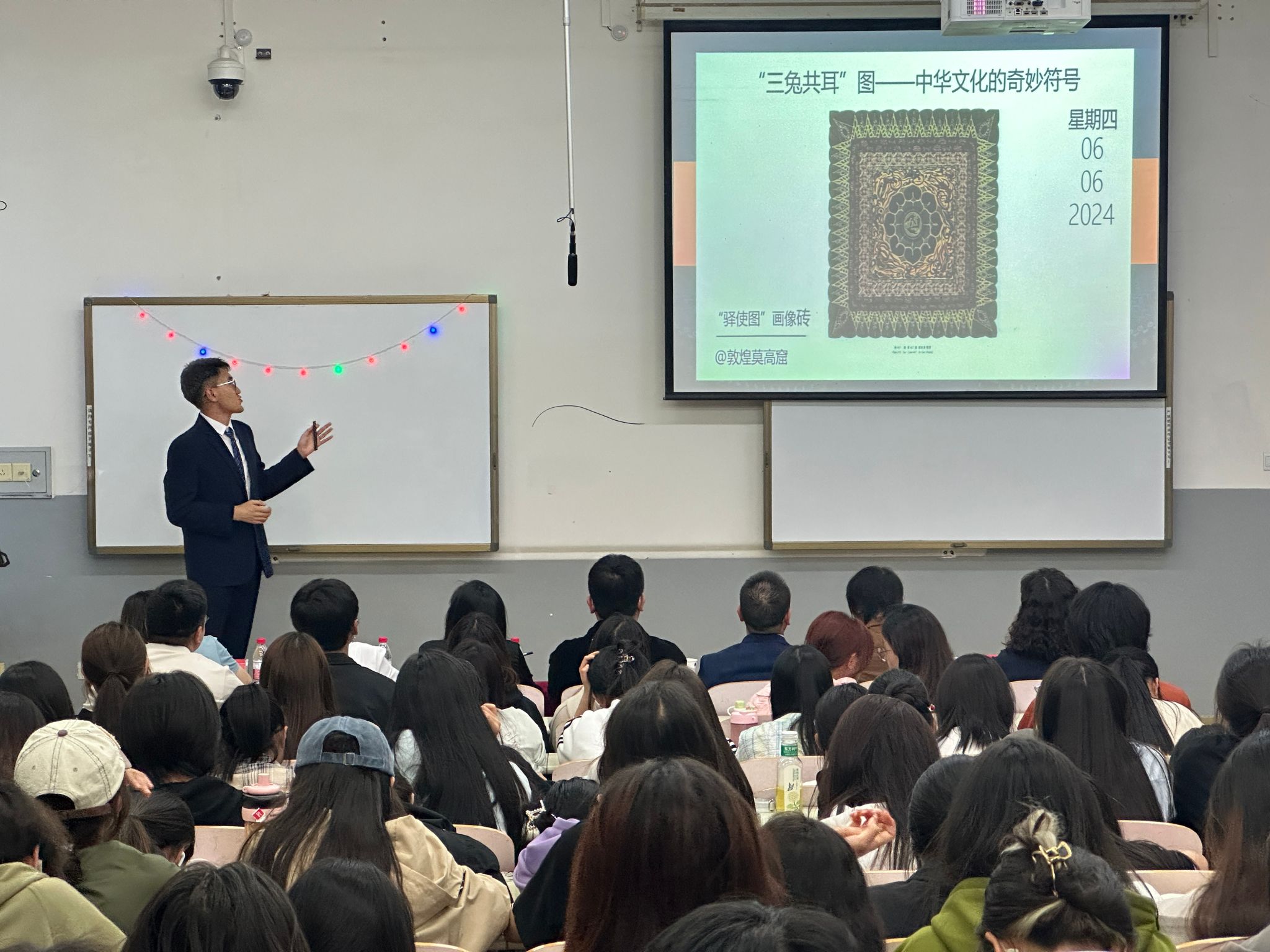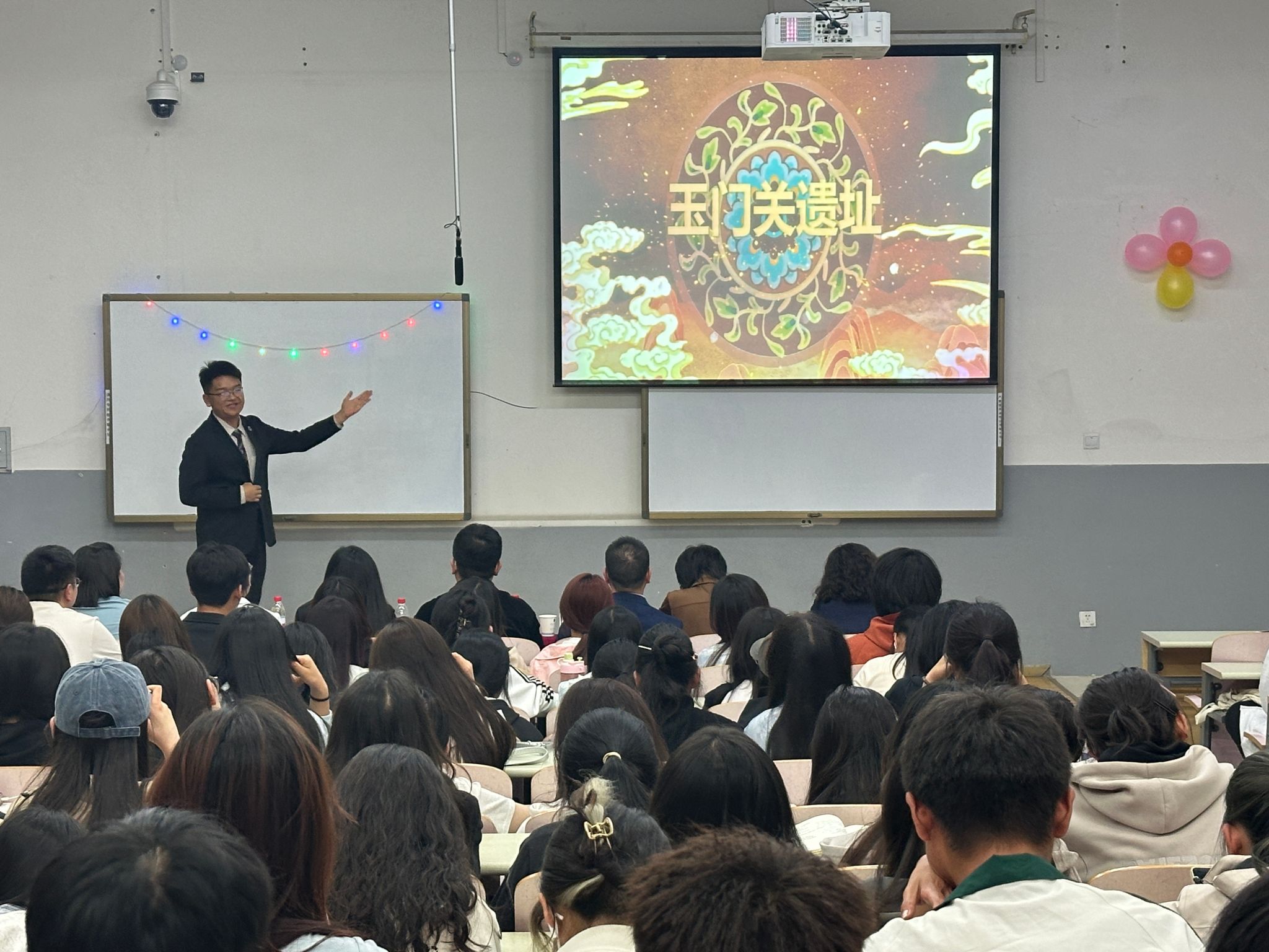 自大赛启动以来,来自六个学院(部)的30名参赛选手经过初赛、复赛的激烈比拼,最终8名选手进入决赛。决赛设“娓娓而谈”“口若生花”“才艺展示”三个环节。选手们紧扣敦煌文化主题,以PPT、Vlog等方式绘声绘色讲解飞天壁画的瑰丽、彩塑舞蹈的灵动,栩栩如生描绘轻盈飞舞的姿态和艳丽绚烂的色彩,透露出蕴含其中的浪漫主义气息,展现出中华优秀传统文化的独特魅力和时代风采,充分体现出决赛选手的专业能力和专业素养。特别是“口若生花”环节,8位选手在敦煌文旅集团运营的景点中随机抽取雅丹魔鬼城、玉门关、敦煌夜市等景点限时讲解,既检验决赛者的知识储备,又考验大家的应变能力和答题策略,选手们的精彩讲解让观众仿佛身临其境,将现场的氛围一次次推向高潮。
