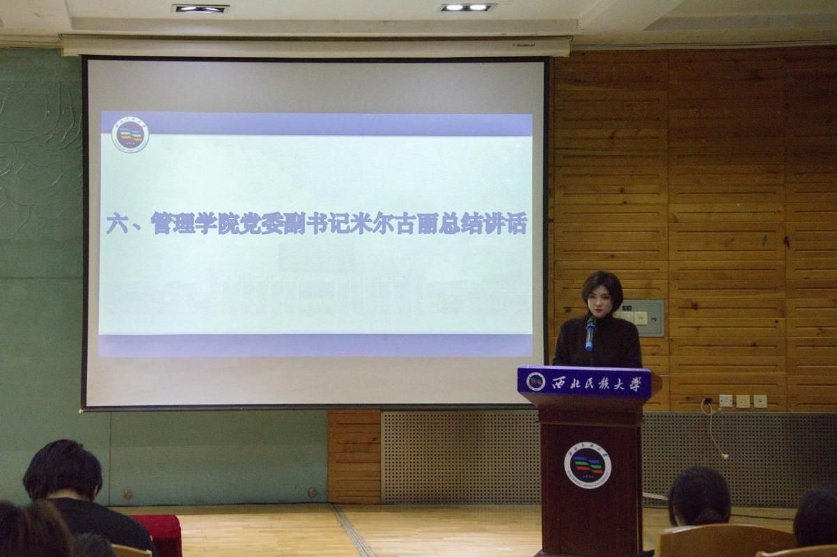 管理学院党委副书记米尔古丽在总结时表示,本次比赛亮点纷呈、成果丰硕,同学们在竞争中精心策划、有效沟通,是一次很好的课外实践,真正做到了赛出精神风貌、赛出专业水平、赛出团队合力。希望大家以此次比赛为契机,在创新创业路上砥砺前行,将成长规划融入时代发展,不负韶华,刻苦学习,赋能未来。