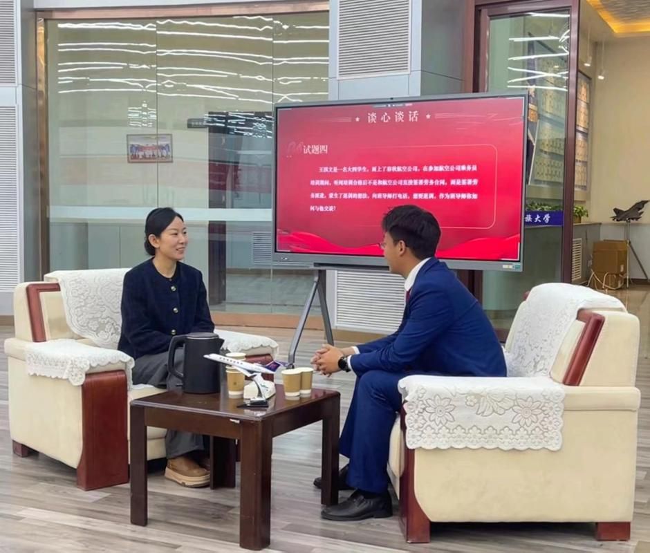 为提升班导师素质能力,营造力争上游班风学风,促进毕业生高质量充分就业,近日管理学院航管专业首届班导师素质能力比赛在航空实训基地成功举办。管理学院负责人向党、米尔古丽出席,学生工作部学生思想教育科科长马玥和管理学院航管专业系主任付春燕、团委书记周自高、辅导员李文瑞、辅导员董城佑组成评委团,确保比赛评审的公平公正与专业高效。