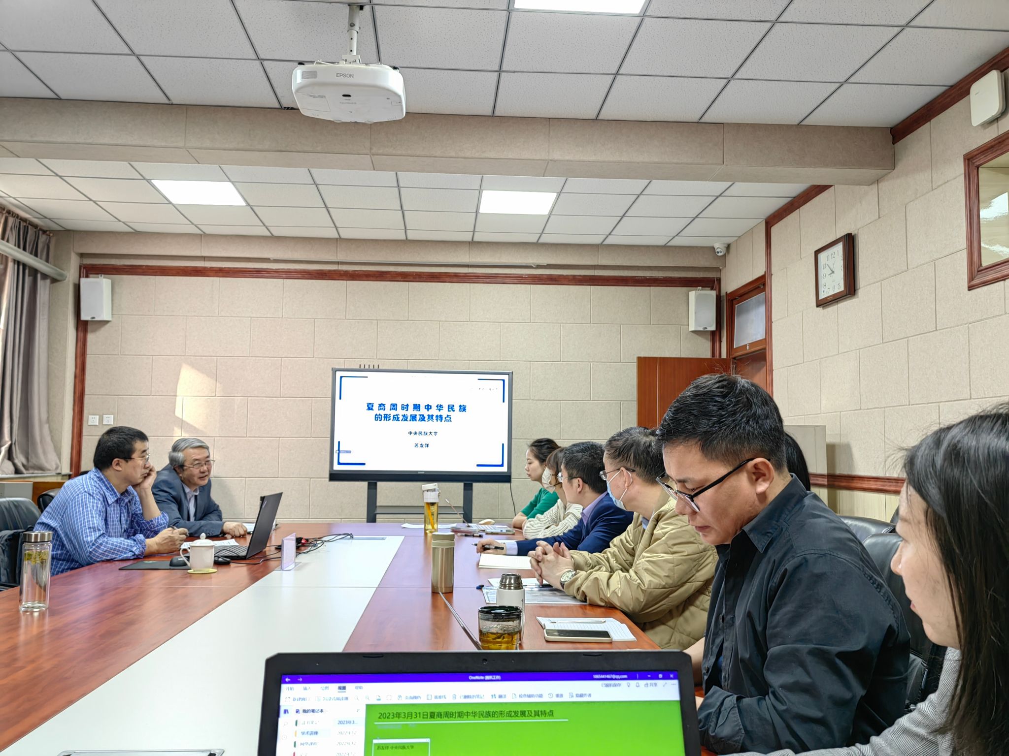 应学校邀请,2023年3月31日上午8:40—10:40于文渊楼518室,中央民族大学教授、博士生导师苏发祥为我校师生作了题为“夏商周时期中华民族的形成发展及其特点”的学术讲座。讲座通过腾讯会议线上平台同步进行,铸牢中华民族共同体意识研究院、历史文化学院、中华民族共同体学院及中国语言文学部的100余名师生聆听了此次讲座。讲座为“铸牢中华民族共同体意识·名师讲堂”第十三讲,由铸牢中华民族共同体意识研究院副院长尹伟先教授主持。