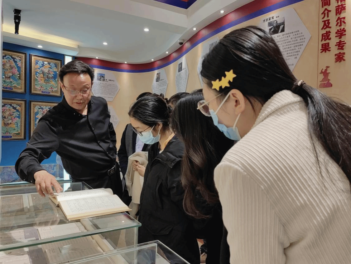 参观期间,王国明研究员与同学们深入互动交流,进一步了解《格萨尔》文化传承与保护研究情况。