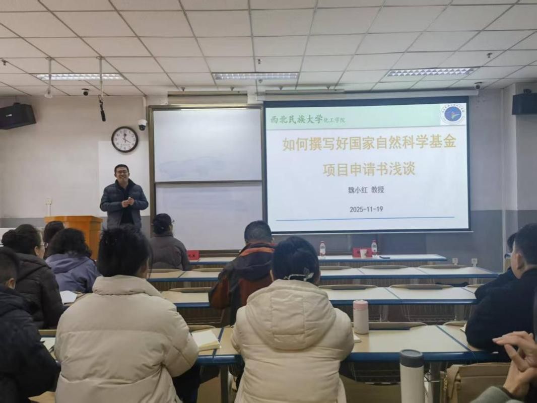 为系统部署2026年度国家自然科学基金项目申报工作,营造协同攻关的科研氛围,全面提升项目申报质量与获批率,化工学院于2025年11月19日在本部文津楼202教室举办“2026年度国家自然科学基金申报启动暨经验交流会”。学院领导班子、骨干教师及实验技术人员参与了本次交流活动,活动由副院长李振华教授主持。