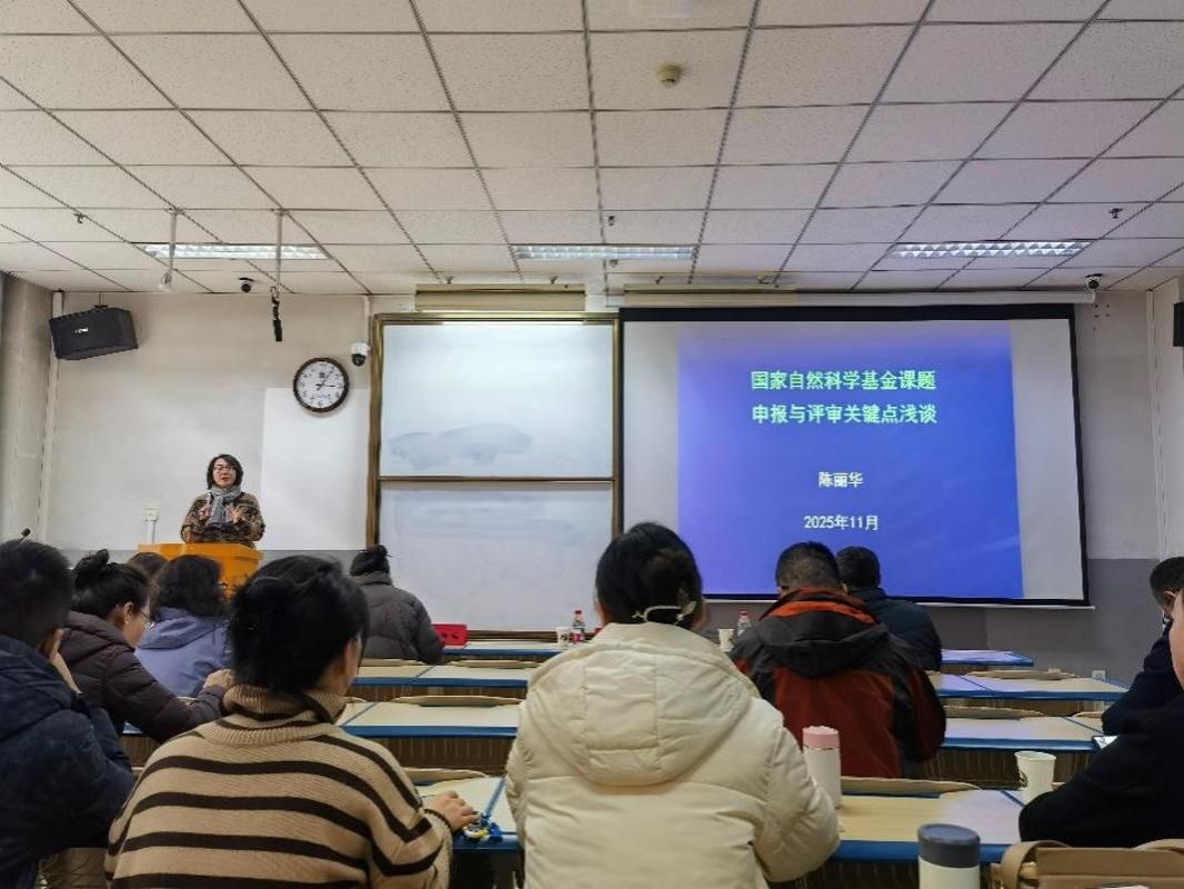 在经验分享环节,院长陈丽华教授紧密结合最新的国家自然科学基金项目指南及政策导向,深入剖析了基金申报的宏观布局与战略设计。陈院长重点强调了选题如何精准对标国家需求与科学前沿,并就如何凝练具有创新性的科学问题、撰写逻辑清晰的论证材料、凸显优势及特色提供了权威解读,为老师们指明了申报方向。