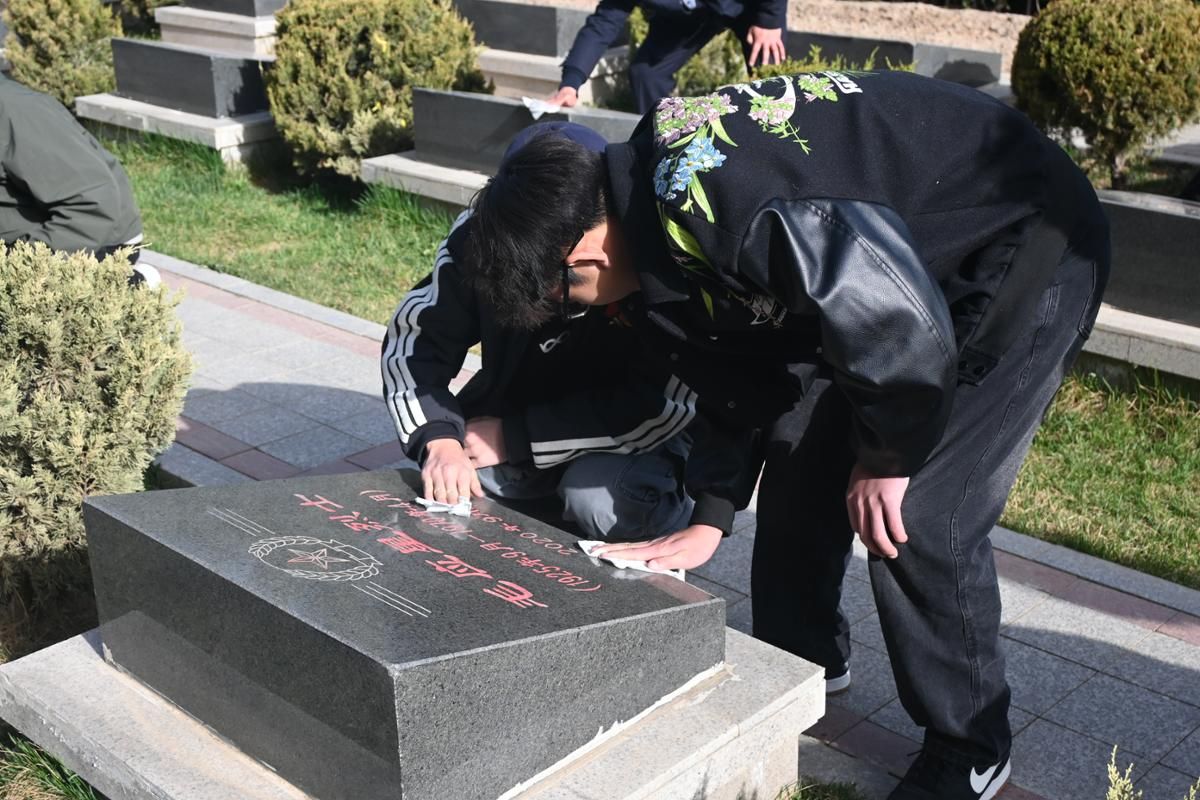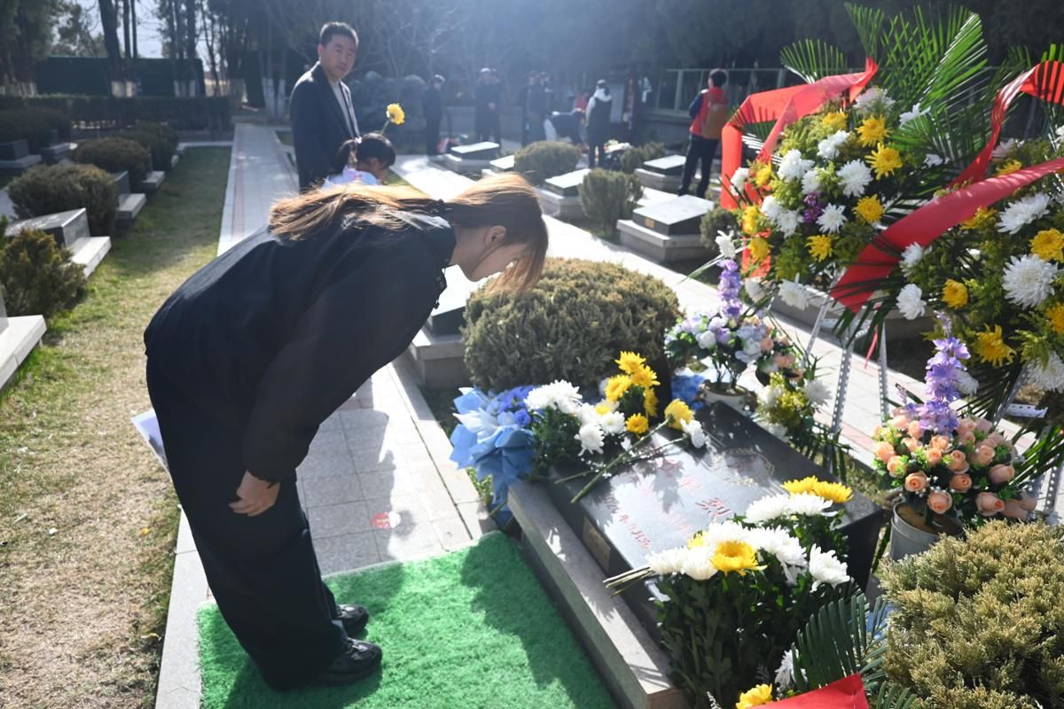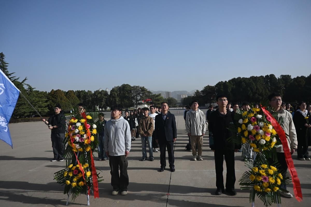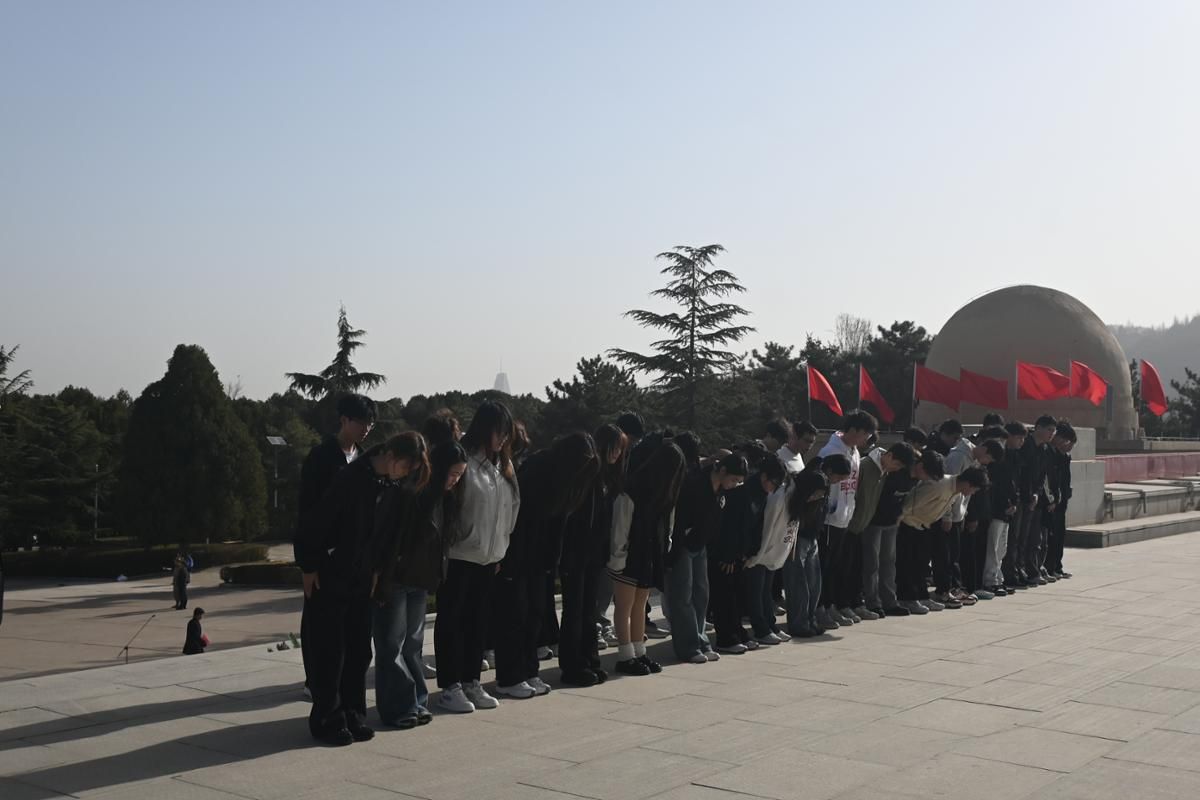 陵园活动现场,全体人员整齐列队,神情肃穆。伴随着雄壮的国歌《义勇军进行曲》,全体师生肃立注目,齐唱国歌,向为国家独立、民族解放和人民幸福英勇献身的革命先烈致以崇高敬意。随后,全场垂首肃立,默哀三分钟,深切缅怀先烈们的不朽功勋,追思他们为国为民的高尚情怀。默哀毕,缓步上前,将承载着崇敬与哀思的花篮敬献于烈士纪念碑前,全体人员向革命先烈三鞠躬,表达对英烈的无限追思。随后,大家依次绕行纪念碑,瞻仰烈士丰碑,并到烈士墓园擦拭墓碑尘土,以朴素庄重的方式,寄托对革命先烈的深切怀念。