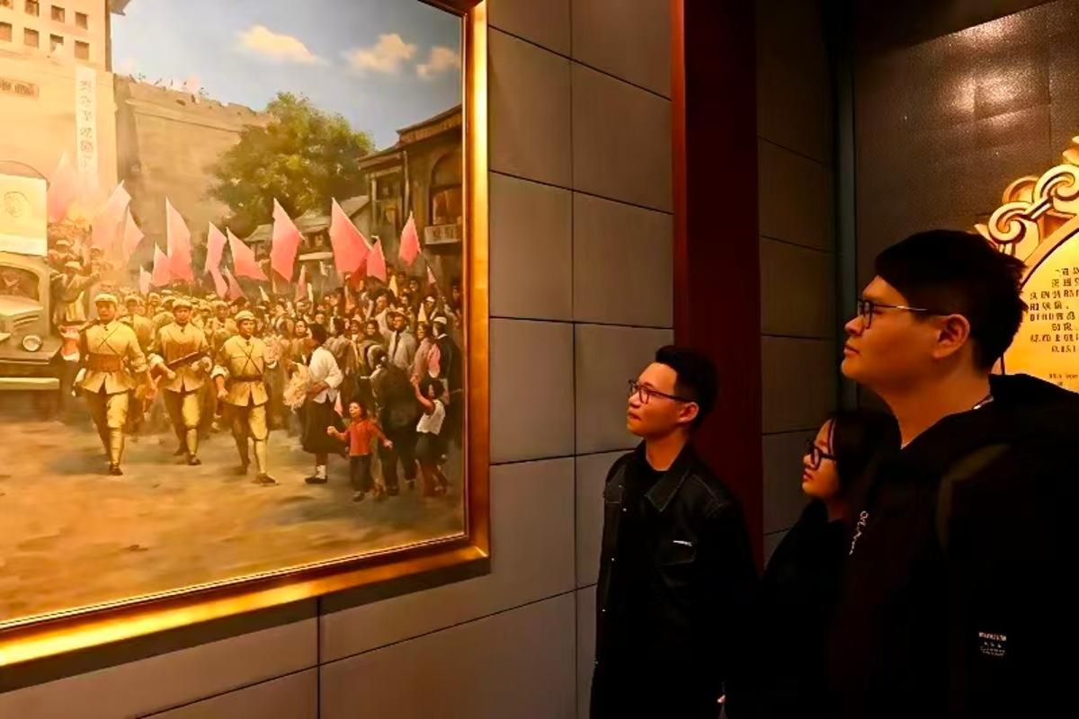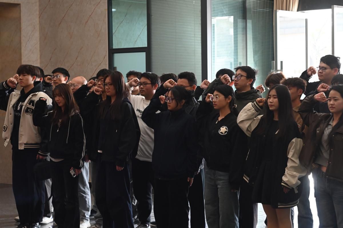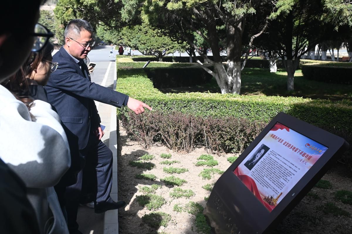 祭扫之后,全体师生依次参观兰州战役纪念馆和“红星照耀中国”展览馆,驻足观看陵园内的烈士生平事迹展板,进行党团联建红色研学。在兰州战役纪念馆,辅导员晁代发带领学生党员重温入党誓词。团员青年面向团旗,朗声重温入团誓词。铿锵有力的誓言表达了新时代青年学子继承先烈遗志、勇担时代使命的坚定信念。宣誓完毕,大家跟随讲解员,认真聆听革命先烈浴血奋战、不畏牺牲的英雄事迹,驻足观看历史照片与革命文物,在沉浸式的红色学习中感悟信仰的力量,厚植爱国爱党情怀。