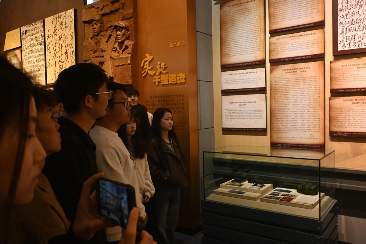 在参观学习和交流过程中,辅导员晁代发向同学们讲述,一片片“红土地”诞生了无数可歌可泣的英雄儿女,他们用鲜血、汗水留下了无比珍贵的红色记忆,并启发大家,要从筚路蓝缕、上下求索、波澜壮阔的百年征程中汲取奋进力量,在革命先烈、仁人志士铺就的道路上传承薪火、接续奋斗,要传承红色记忆,坚定信仰信念,做坚定的马克思主义者,要铭记历史、珍惜当下,树立远大理想,勇担时代使命。在沉浸式的红色教育活动中,大家接受了一次深刻的爱国主义教育和长征精神洗礼。学生代表表示,将以革命先烈为人生榜样,传承红色精神,坚定理想信念,勤奋学习、砥砺品格,把爱国情、强国志转化为发奋学习、报效祖国的实际行动,以更加昂扬的精神状态勇毅前行,用实际行动告慰先烈英灵。
