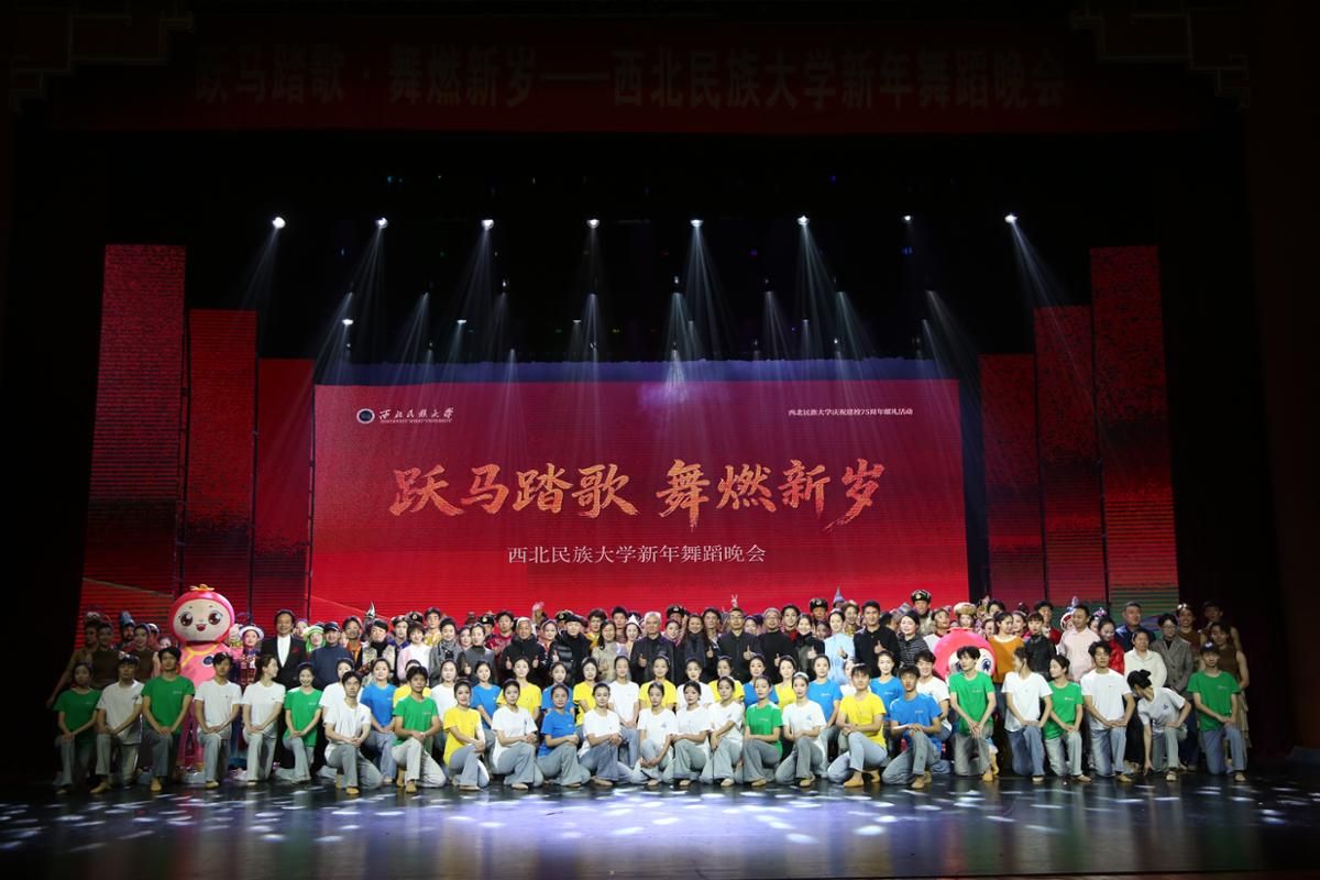 12月16日,跃马踏歌·舞燃新岁——西北民族大学新年舞蹈晚会在校本部大礼堂精彩上演。晚会以铸牢中华民族共同体意识为主线,通过“丝路踏春・民韵贺岁”与“文脉新光・星耀民大”上下两篇,生动呈现了学校在艺术创作、人才培养与文化传承方面的丰硕成果。