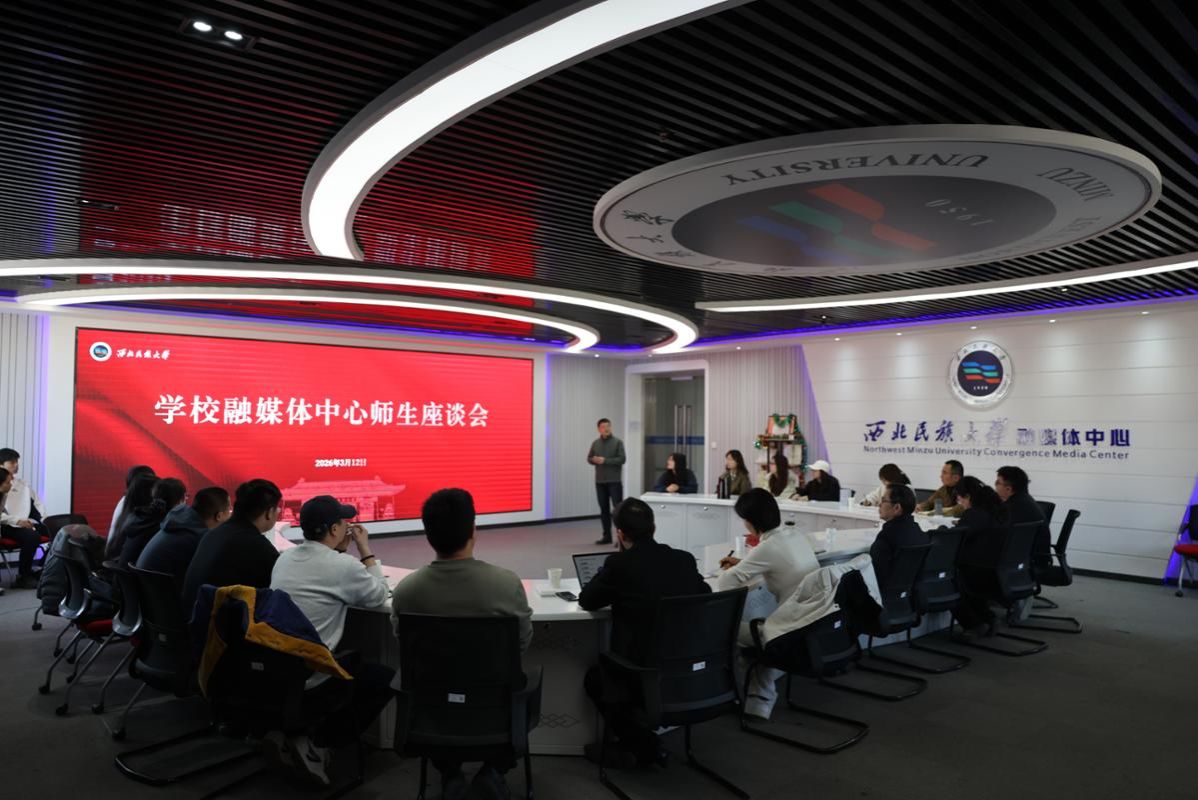 党委宣传部全体成员、新媒体研究中心指导教师及融媒体中心学生代表参加座谈