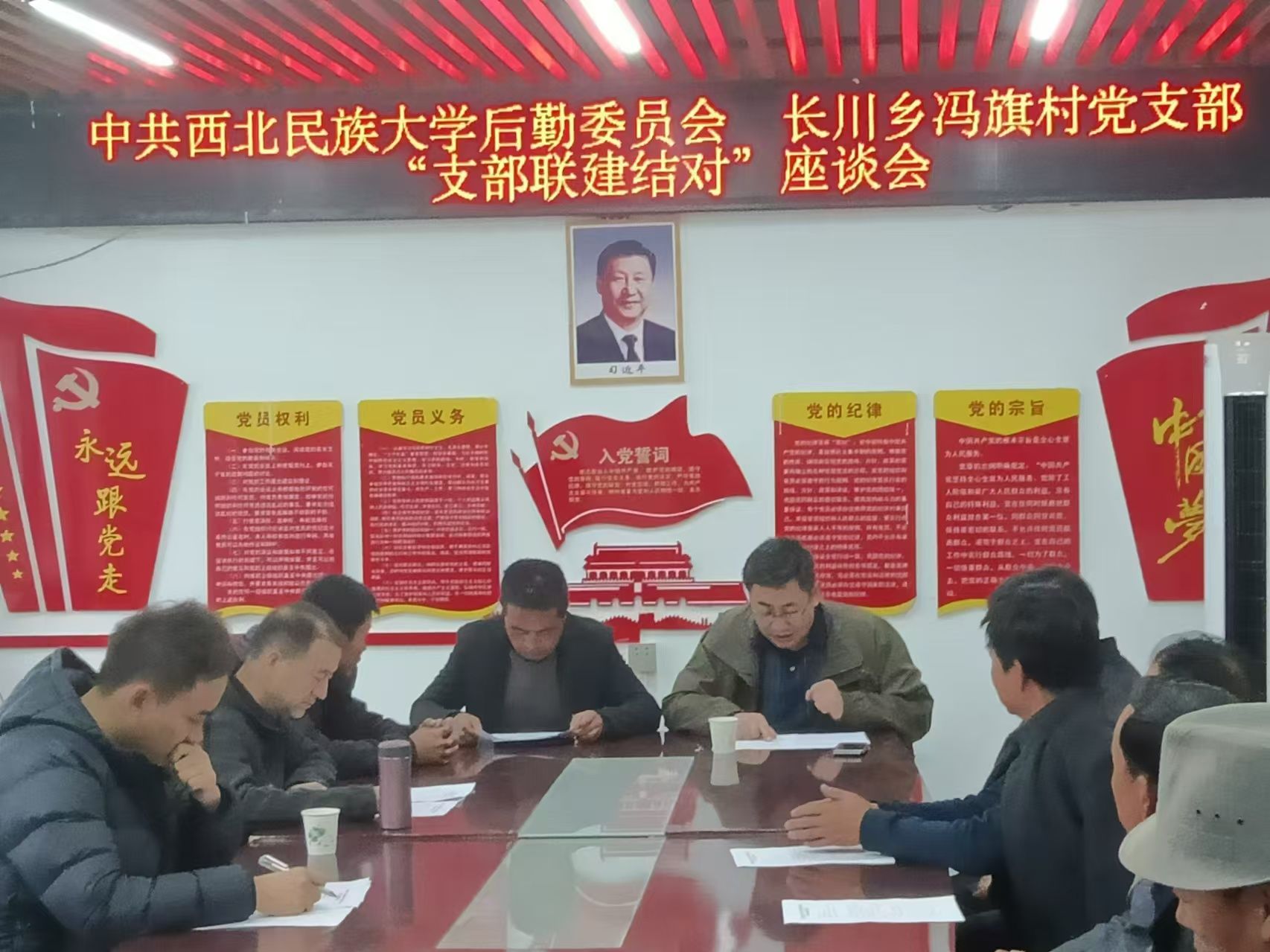 为强化党建引领,扎实做好学校乡村振兴定点帮扶工作,10月24日至25日,学校后勤党委相关负责人一行赴学校帮扶地甘南临潭县长川乡冯旗村开展党组织共建活动。本次党组织共建活动以“支部融合共建,助力乡村振兴”为主题。双方党组织主要围绕支部联学、支部联建等方面进行了座谈交流,重点学习了习近平总书记在甘肃考察时的重要讲话和在全国民族团结进步表彰大会上的重要讲话精神,一起重温入党誓词,表达对党忠诚和对共产主义事业的坚定信念。...