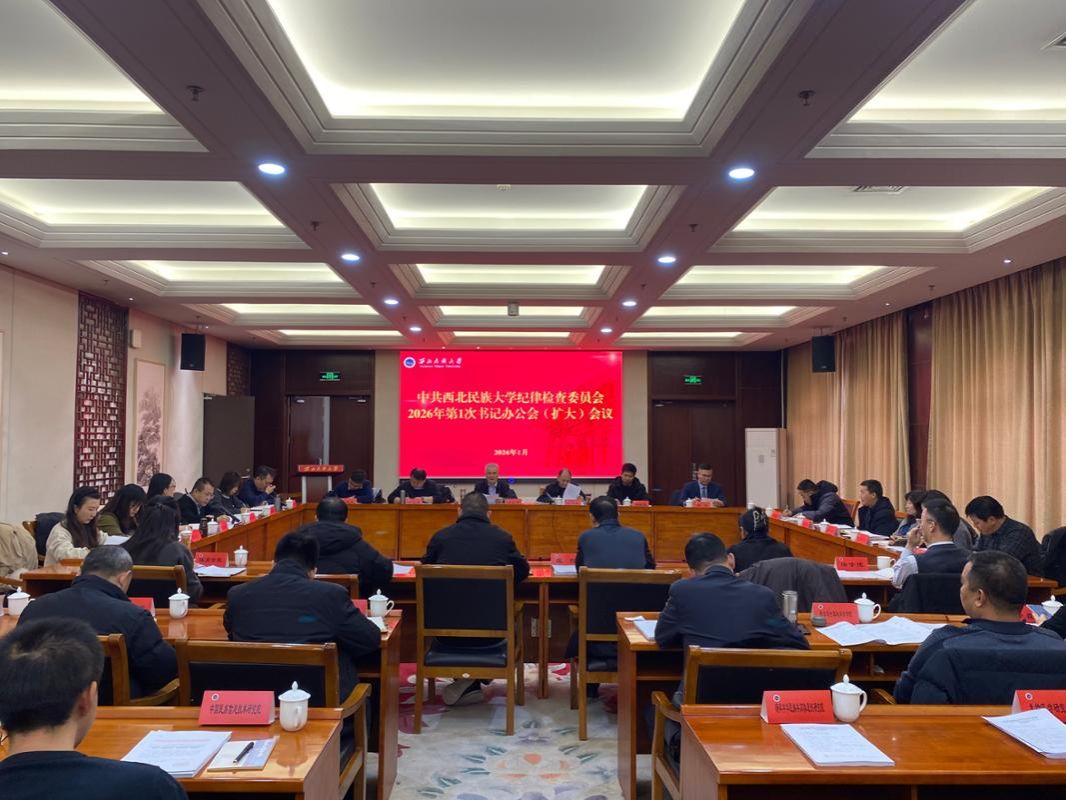 2026年1月19日下午,学校纪委在西北新村校区礼堂三楼会议室召开纪委书记办公会(扩大)会议。学校党委常委、纪委书记伍永章主持会议并讲话。