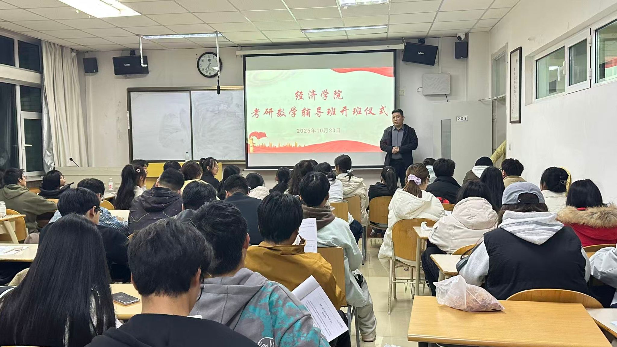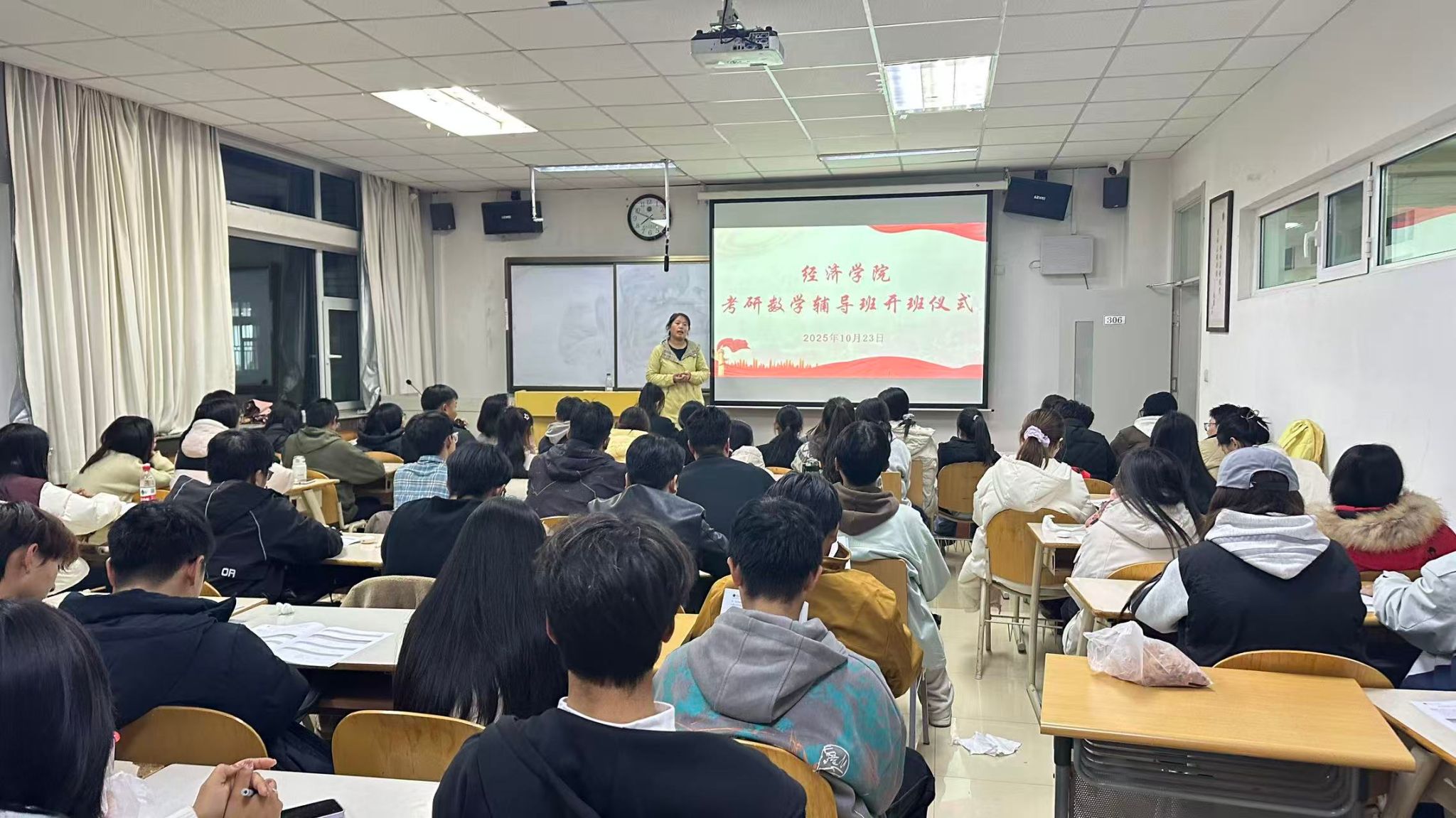 10月23日晚,经济学院考研数学辅导班开班仪式在致善楼306顺利举行,是落实学校党委关于加强学风建设,提升人才培养质量要求,助力经济学院学生实现更高层次就业与发展进行的创新性教育实践。学院高度重视考研数学辅导班工作,学院党委书记、院长出席开班式,全体报名参训学生参加。