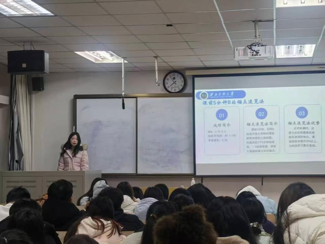 分享会上,三位同学结合自身经历,从不同维度倾囊相授成长秘籍。娄雅慧同学以“深耕专业,厚积薄发”为核心,分享了课程学习、证书备考的实用方法,用“踏实走好每一步”的真诚态度打动在场同学;周爱琳同学聚焦新生适应与时间管理,拆解了学业与实践的平衡技巧,传递“主动探索,不负韶华”的成长理念;刘亚炘同学则围绕心态调整与目标设定展开,结合竞赛与调研经历,鼓励大家“以坚韧破局,以热爱续航”。整场分享会气氛热烈,三位同学的宣讲既干货满满、操作性强,又传递了积极向上的人生态度,将榜样引领融入了学院的日常教育。
