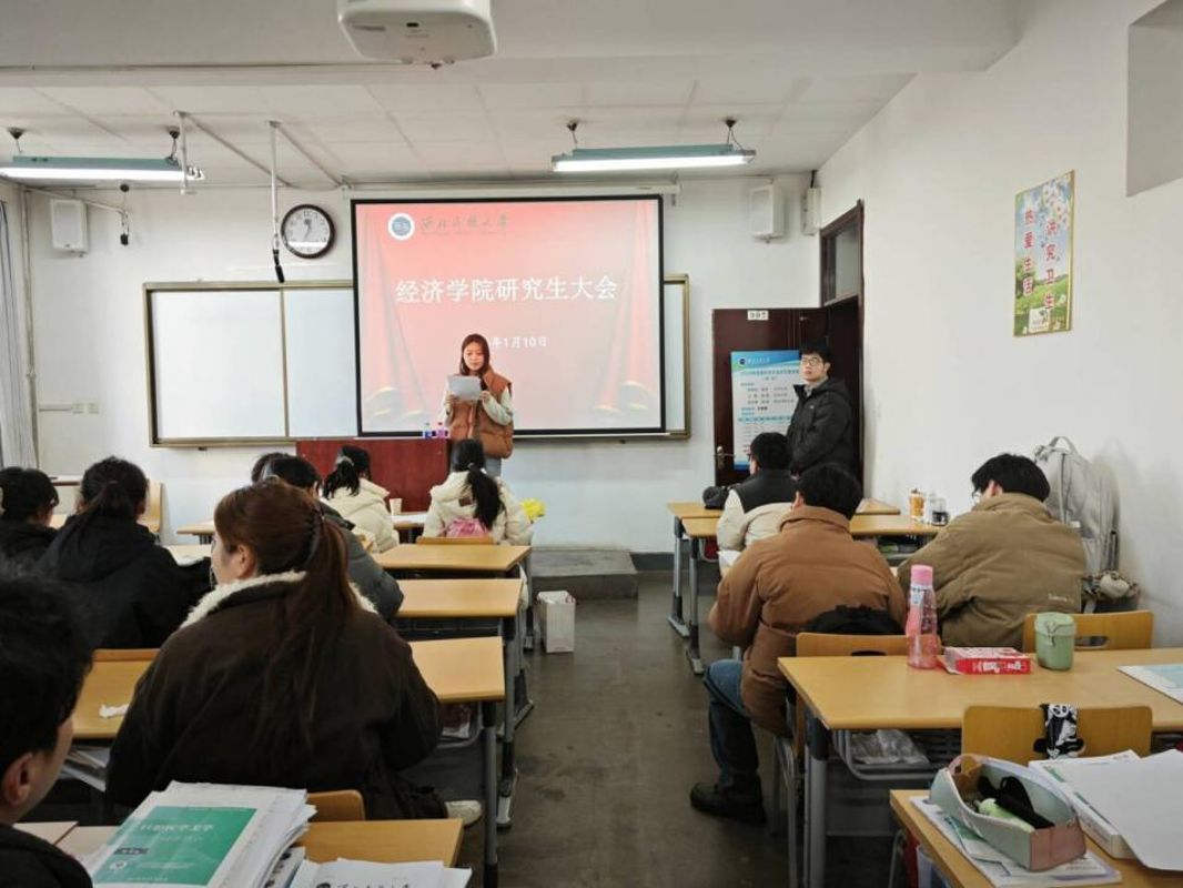 1月10日上午,经济学院在文渊楼307召开全体研究生大会,会议围绕寒假前后安全教育、寒假期间遵规守纪和假期实习实践安全等三方面展开。