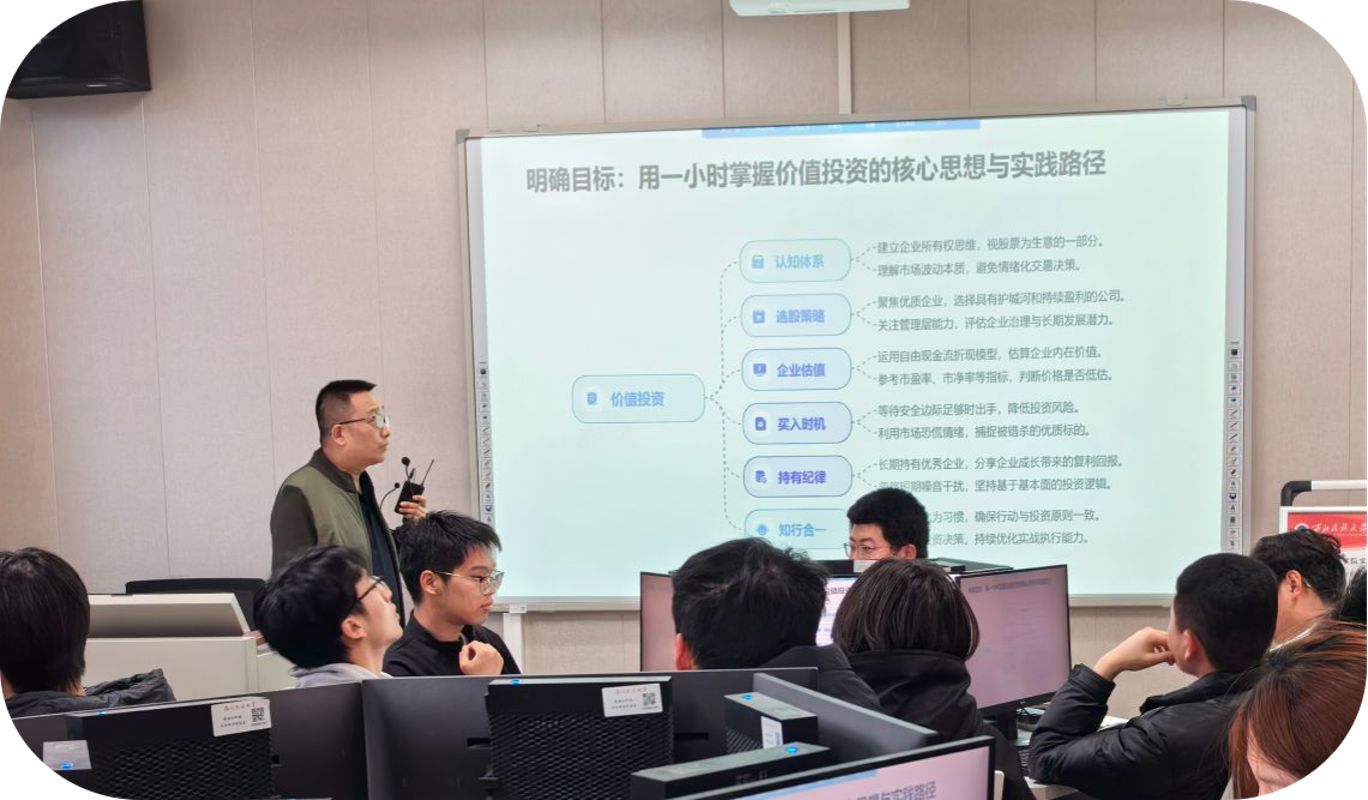 现场互动积极、氛围热烈。此次活动帮助同学们树立了正确的财富观念,掌握了价值投资的基本思路与方法,为提升财商素养、认识商业世界提供了有益指导。