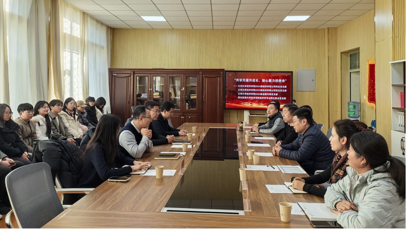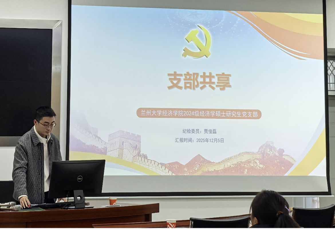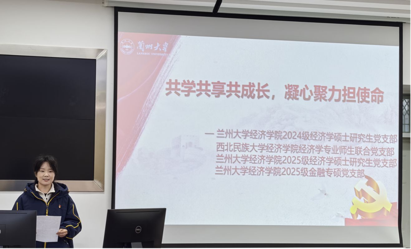 在致善楼102室,党员们围绕参观感悟展开交流,进一步凝聚听党话、跟党走的思想共识。兰州大学经济学院研究生党支部代表以“学习贯彻党的二十届四中全会精神,勇担西部经济学人时代使命”为主题,系统梳理会议新思想、新论断,引导党员将国家宏观战略与个人科研方向、学术实践相结合,明确服务西部发展的责任担当。西北民大经济学专业师生联合党支部代表以“铸牢中华民族共同体意识,探索民族地区发展之路”为主题,深刻阐释其经济学内涵,结合民族地区发展案例,强化了党员服务区域协调发展、实现共同富裕的政治自觉与行动自觉。