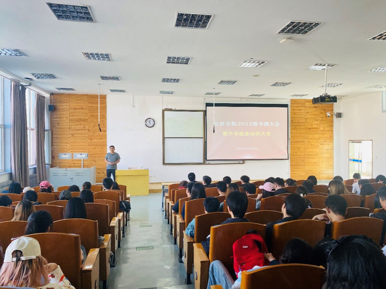 9月24日,经济学院召开大四年级学生升学就业主题大会。院长王超教授、副院长马子量教授、辅导员马永腾和全体2022级学生参加会议。