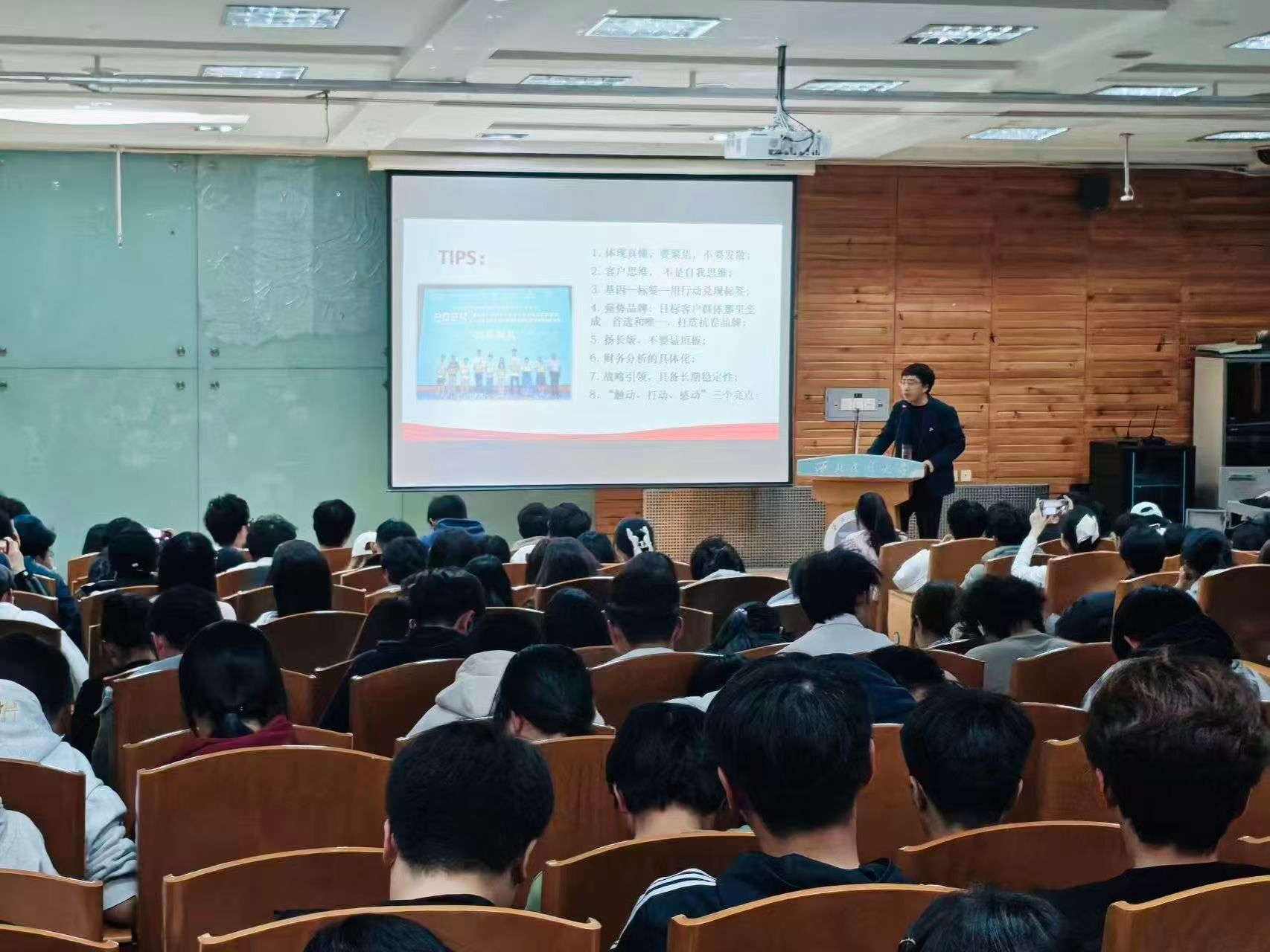2022级经济学专业杨烨同学从参赛者视角分享了竞赛心得。杨烨作为经济学院获得推免资格的优秀学子,今年保送至中国社会科学院大学攻读世界经济专业,获得校级多项荣誉称号,在2025年全国商业精英挑战赛品牌策划竞赛中获得全国总决赛一等奖和精英奖。他结合自己的参赛经历,从团队协作、时间管理、现场展示技巧等方面提供了具体实用的建议,分享了如何平衡学业与竞赛、如何应对备赛压力等实用经验,让在场同学受益匪浅。