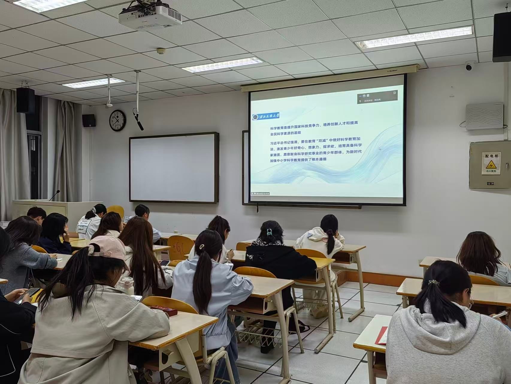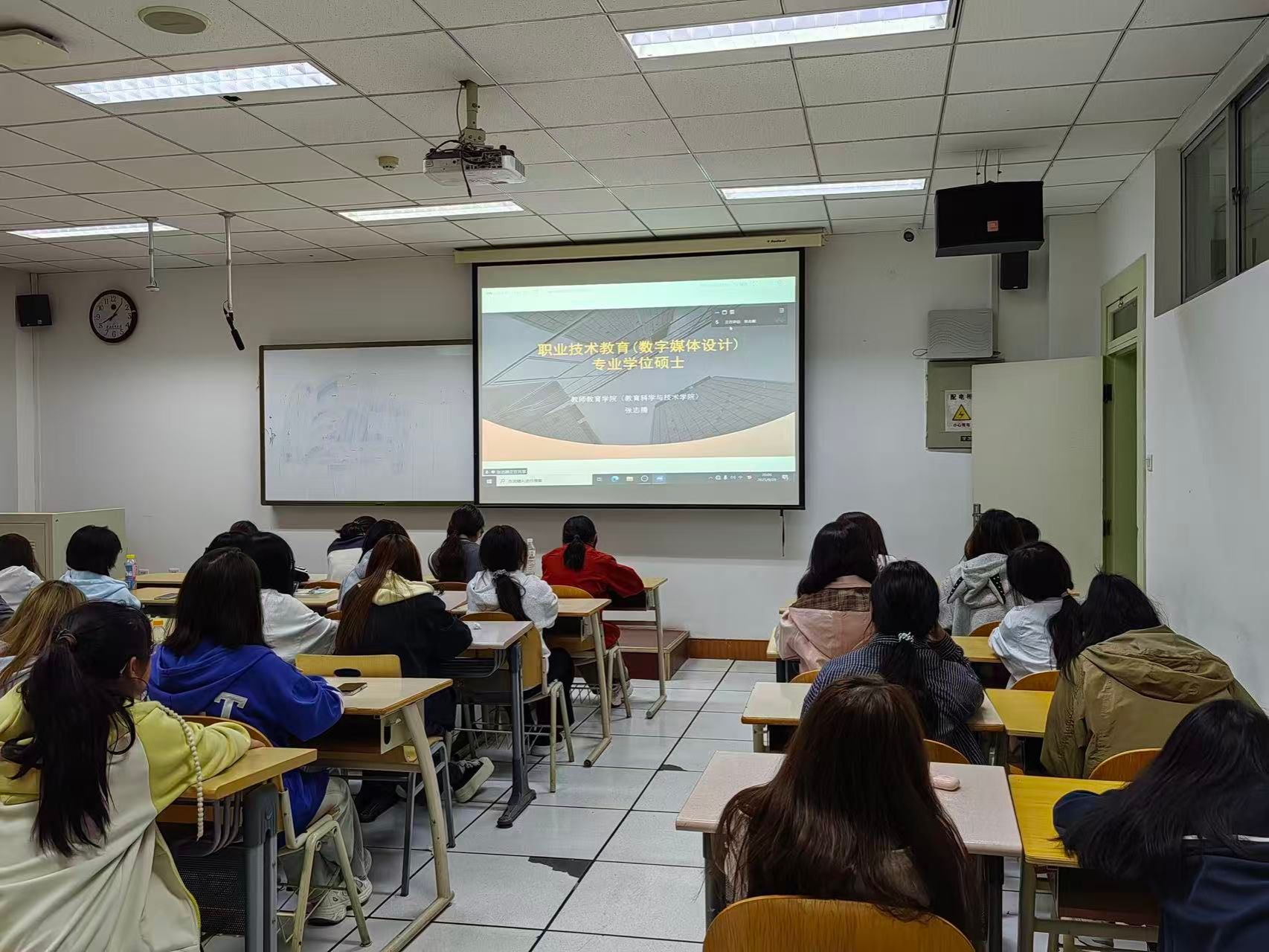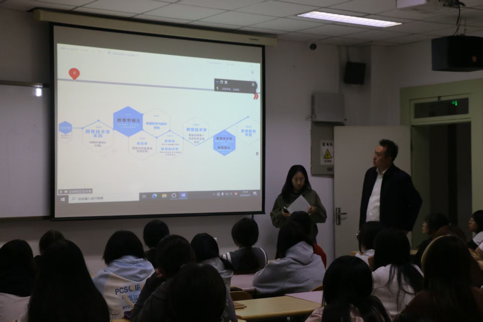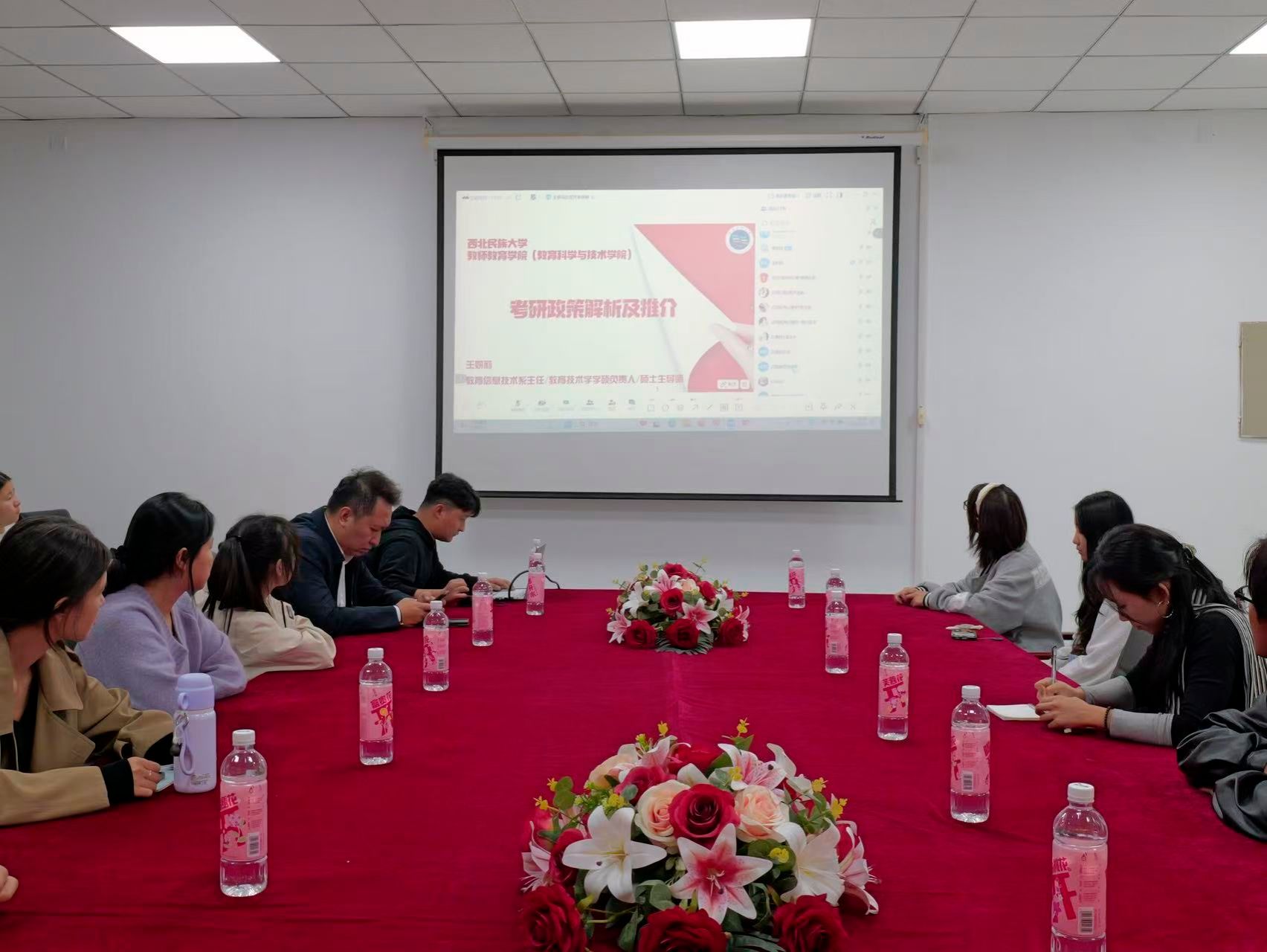 讲座第一部分聚焦考研备考,学院研究生各方向负责人依次登场,为学子们带来实用建议和备考攻略。王妍莉老师率先开讲,按时间轴深度解析本校硕士招生政策,精准锚定从预报名至考试的每一个关键节点,并全面介绍研究生奖助体系,助力学子扫清报考盲区。尕藏草老师则立足学科建设,系统阐述我校教育学学科的深厚积淀与卓越优势,生动呈现学院雄厚的导师团队与师资力量,描绘出清晰的研究生培养图景,激发学子对学术深造的向往。郭治虎老师紧扣科学教育方向,从专业内涵、培养路径到就业前景层层剖析,为有志于此的学子提供精准的方向参考。张志腾老师聚焦职业技术教育,深入介绍其创新培养模式与多元育人平台,展现该领域的广阔发展空间。祁芸老师重点推介“现代教育技术”硕士方向,详细阐释独具特色的“U-B-S”协同机制与“三导师”实践教研模式,为学子勾勒出融合理论与实践的高质量培养路径。王荣山老师则围绕心理健康教育专业,系统梳理其核心课程体系与优质导师资源,深化学子对该领域的认知与理解。