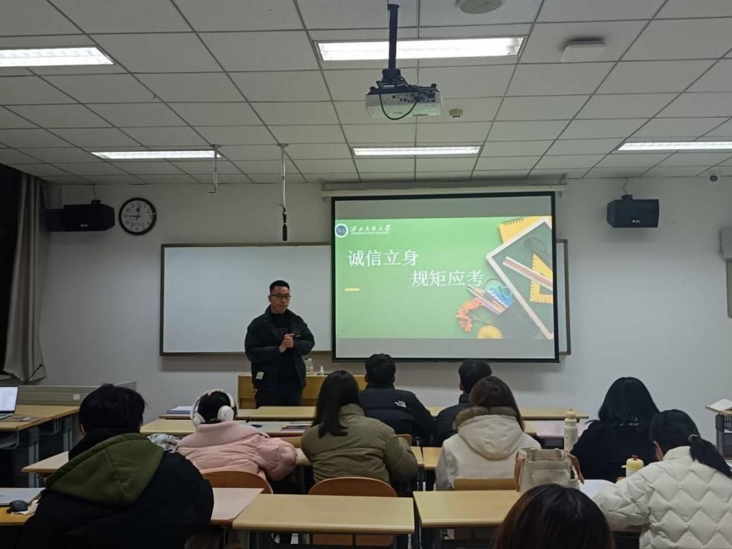 其次,期末考试临近,各班级结合考试的意义及诚信的利弊强调了诚信考试的重要作用,通过典型考试作弊案例认真学习了《中华人民共和国刑法》、《中华人民共和国教育法》及《西北民族大学学生考试违规处理办法》中关于考试规定的相关要求及底线红线,引导学生科学备考,拒绝“临时抱佛脚”、严格遵守考场“五严禁”要求,努力做诚信考试的带领者、守护者。