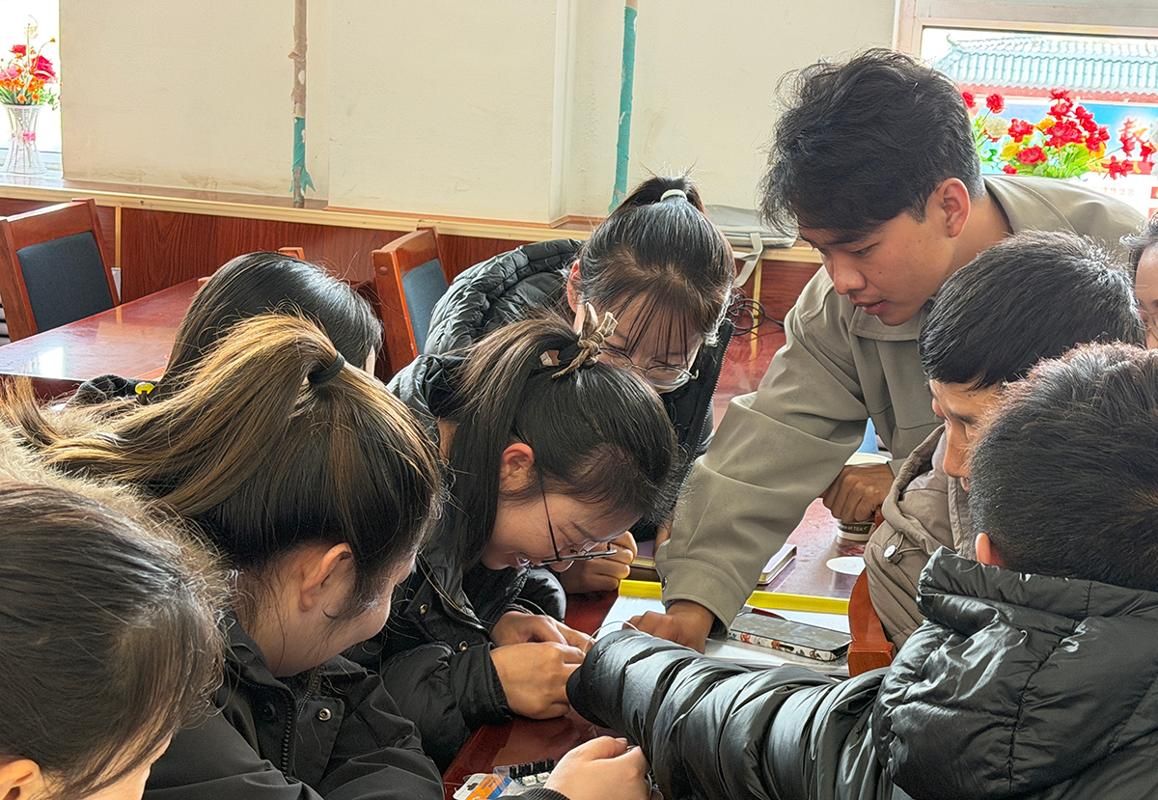教研过程中,指导组针对前期项目化教学中,当地教师对新型课程理解不深、教学方法把握不足等问题,量身打造“专题讲座+实操培训+观课评课+答疑研讨”的一体化教研模式。看召草老师围绕课程理念、项目化教学模式等开展专题讲座,厘清教师教学思路;硕士研究生崔清阳、王小龙通过示范讲解和现场实操,手把手指导教师掌握关键技术工具。观课后,指导组还与当地教师深入研讨项目实施重难点,逐一答疑解惑,围绕课堂活动设计、过程性评价等方面提供针对性优化建议。活动中,参训教师积极学习、主动探究,现场研思学用氛围浓厚。