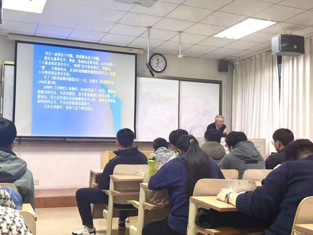 11月25日下午,历史文化学院在榆中校区致善楼502教室举办“中国史的学习与学术训练”主题讲座,本次讲座由我校铸牢中华民族共同体意识研究院、历史文化学院二级教授、博士生导师尹伟先教授主讲,杨永锋院长主持,部分教师、研究生、本科生参加。
