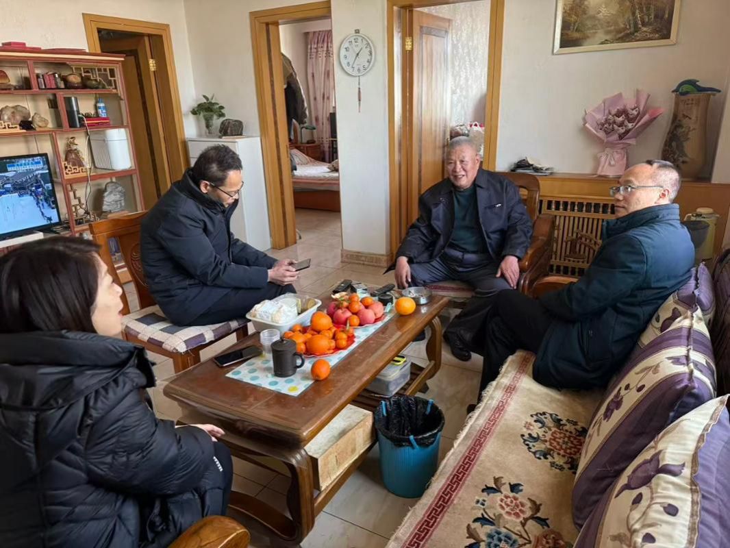 学院领导班子分组带队,逐一走访老教师、老党员家庭。每到一户,都与老同志促膝谈心,细致询问身体、起居及家庭情况,叮嘱其注意保暖、安享晚年。班子成员还介绍了学院年度发展成效,致谢老同志们的毕生坚守与奉献,称其教学经验和育人初心是学院宝贵财富,恳请他们常回校建言献策。