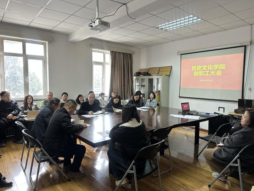 2月28日,历史文化学院在文渊楼107会议室召开2026年春季学期第一次教职工大会。全体专任教师、行政人员、辅导员参加会议,会议旨在总结上学期工作成果,安排部署新学期相关工作,统一思想,收心聚力,明确发展方向。
