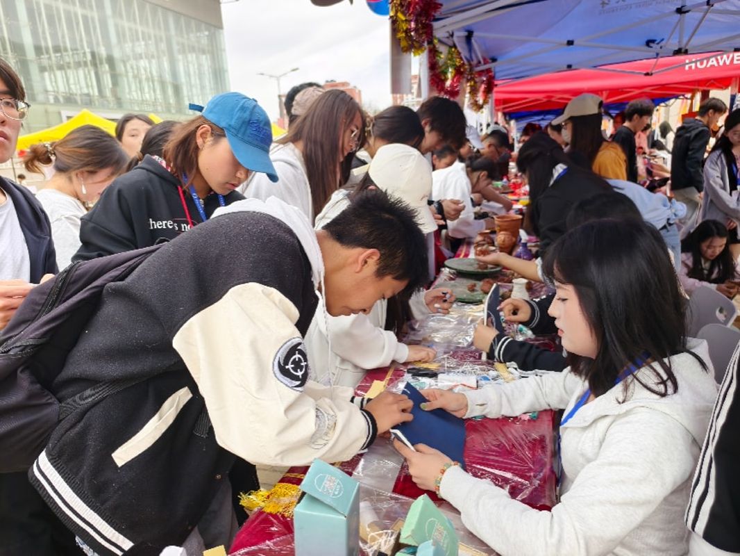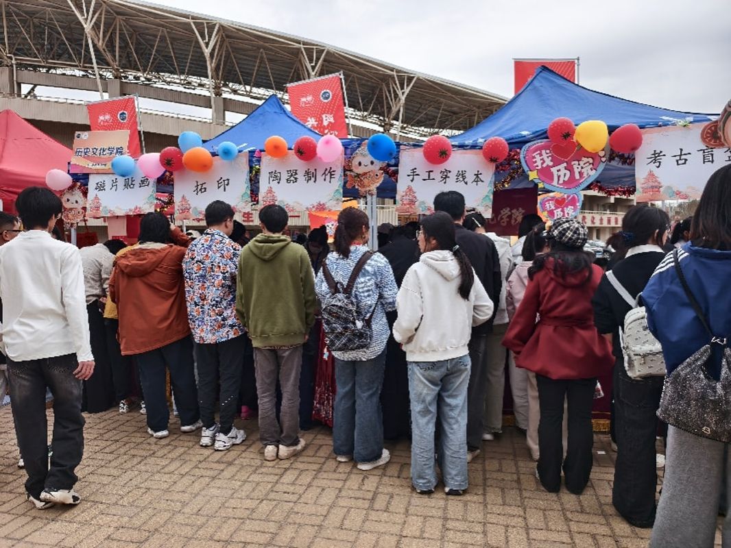 在启动仪式现场的“我们的节日·中华优秀传统文化体验区”,历史文化学院以“指尖探源文脉”为核心主题,搭建了互动性强的沉浸式文化体验区,成为现场最具人气的打卡点之一。