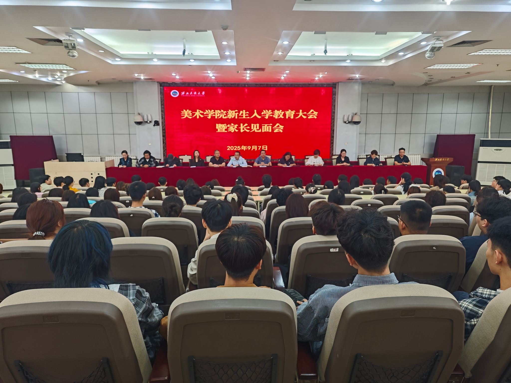 为帮助新生快速适应大学生活,进一步搭建家校协同育人桥梁,9月7日上午,美术学院于文津楼学术报告厅召开新生入学教育大会暨家长见面会。学院党委书记苏知洋、院长徐海翔、副院长冯炳超、王茜,教学管理办公室主任范杰、团委书记王媛媛、学生工作办公室副主任王俊、辅导员乔莉、各系主任、新生班导师及全体新生、家长参加会议,会议由党委副书记贾亚雄主持。