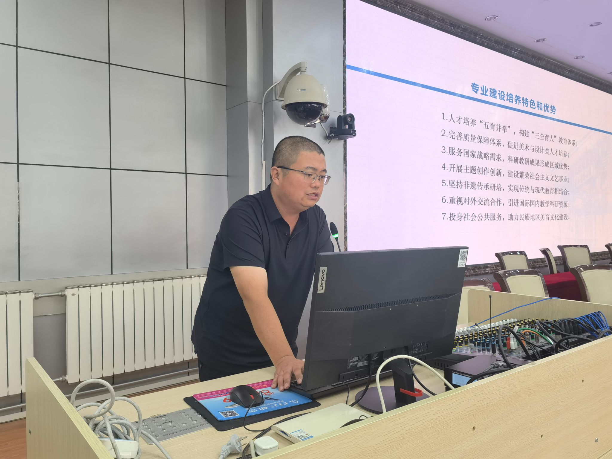冯炳超重点讲解并展示学院本科专业设置、学科特色优势、科研教研成果,内容涵盖人才培育模式、思政建设工作、教学质量保障体系等,展现了学院丰硕的科研成果以及先进的教学理念。