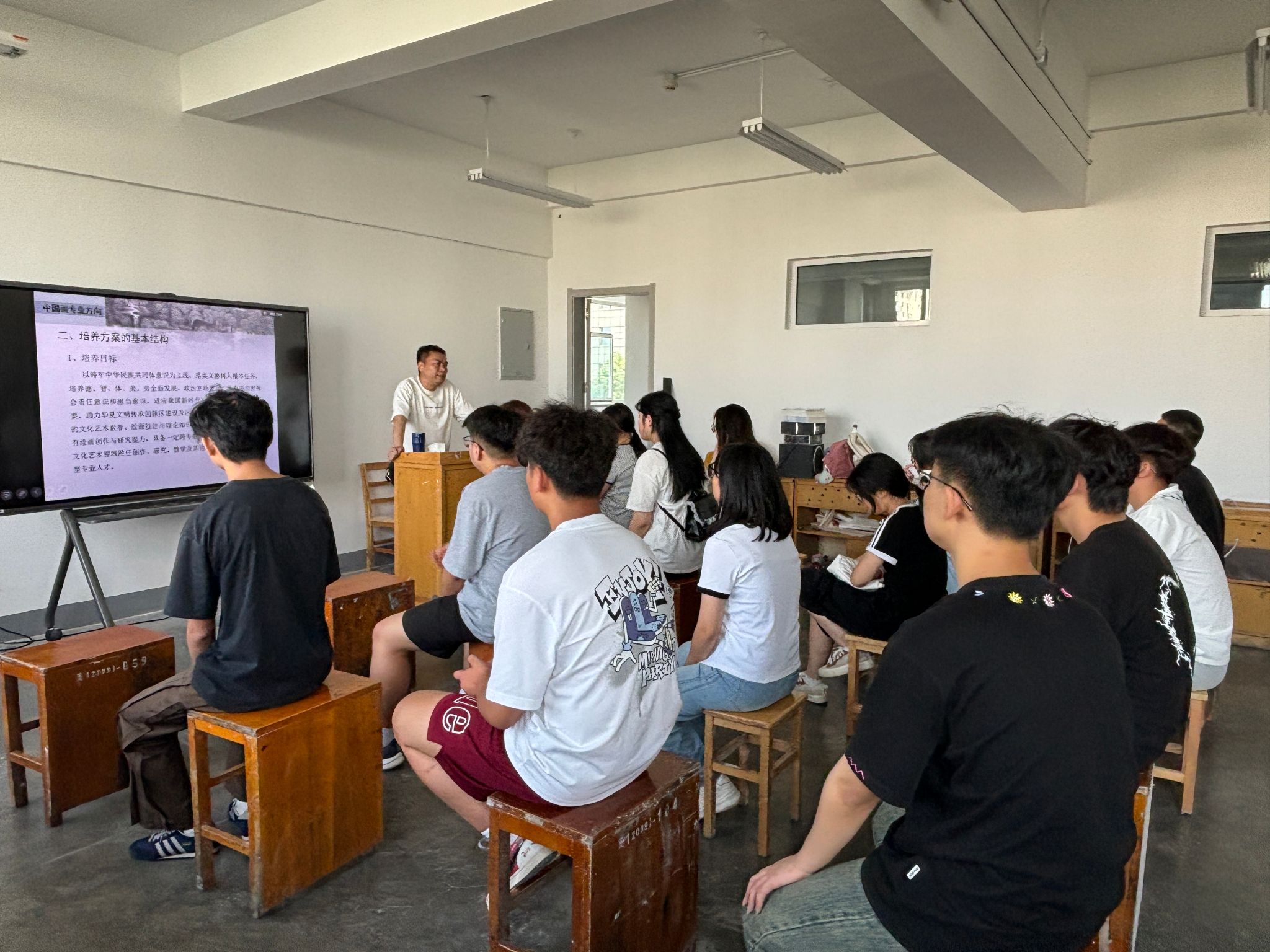 会议伊始,苏知洋代表学院对新同学及家长的到来表示热烈欢迎,简要介绍了学校基本情况及美术学院发展历史、基本情况,并鼓励同学们在未来的创作与学习中,坚守艺术理想,既要锤炼专业技能,更要涵养人文情怀。同时强调学生的成长离不开家校同心的合力,学院将与家长保持密切沟通,及时反馈学生在校情况。深情寄语既向新生传递艺术追求的力量,也向家长传递协同育人的诚意。