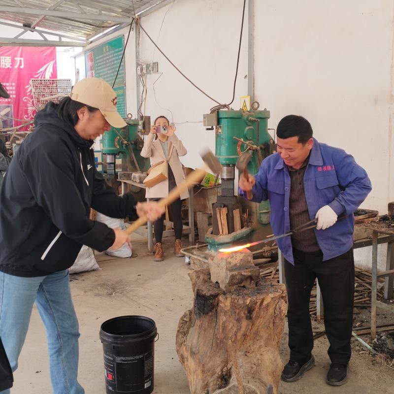 在保安腰刀锻制技艺传承人家中,师生们近距离观摩了从选料、锻打到淬火、打磨的全过程,深刻感受到这项国家级非物质文化遗产的独特魅力。师生们围绕传统工艺的传承流变、市场现状及发展需求,与传承人进行了深入交流,为后续文创设计积累了丰富素材,明确了整体设计思路。