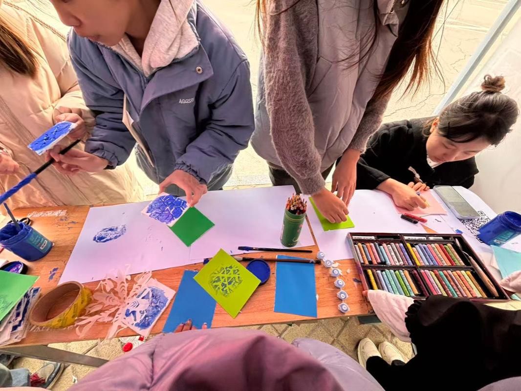 为弘扬中华优秀传统文化,增进学生对二十四节气内涵的理解,2025年11月22日,西北民族大学美术爱好者协会在榆中校区清香食府门口成功举办“雪落指尖·节气拓剪贺”活动。