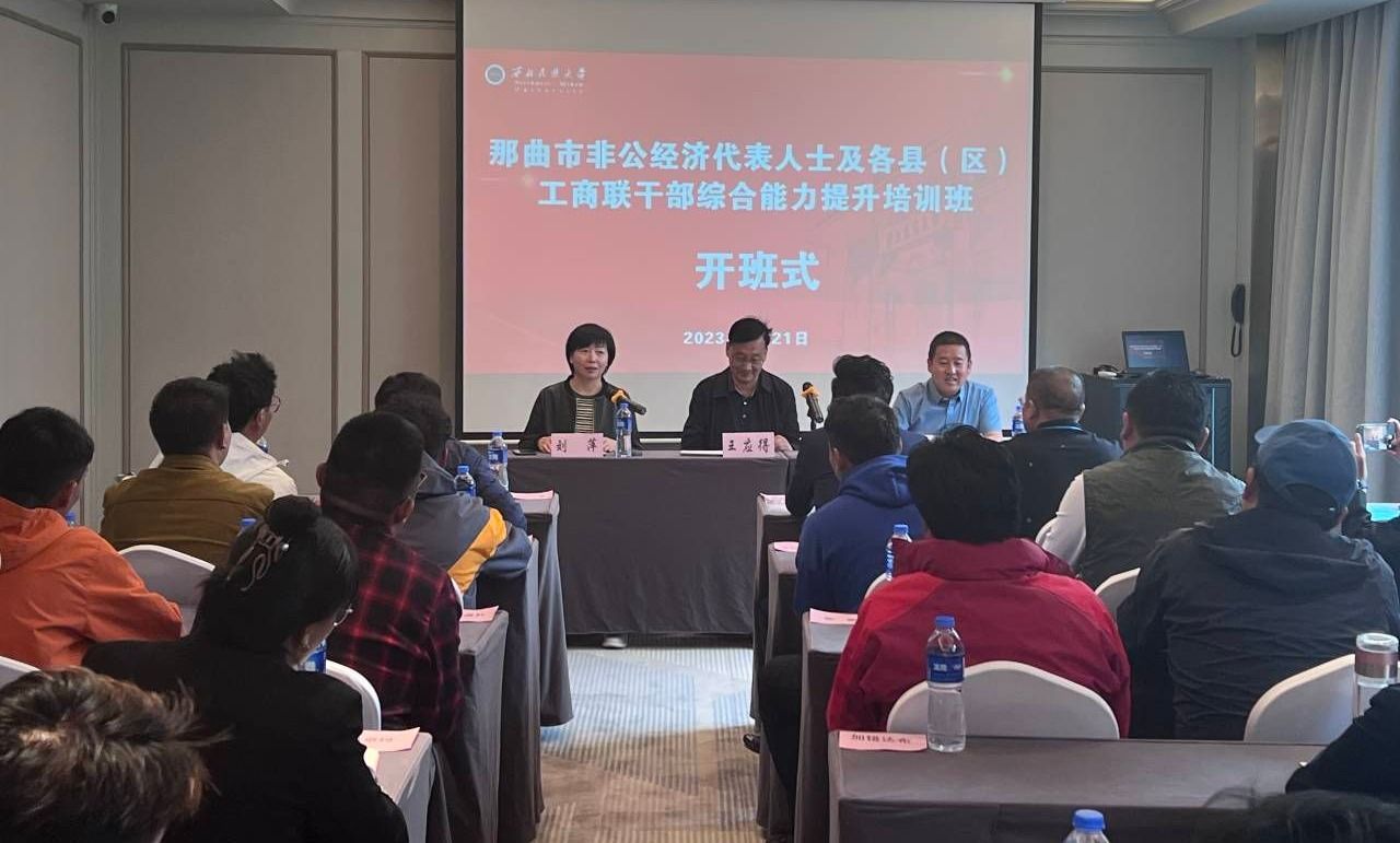 5月21日上午,由西藏那曲市委统战部委托我校承办的西藏那曲市非公经济代表人士及各县(区)工商联干部综合能力提升培训班在学校开班。西藏那曲市委统战部副部长崔海强、继续教育学院党总支书记王应得参加开班式并讲话。开班式由继续教育学院副院长刘萍主持。