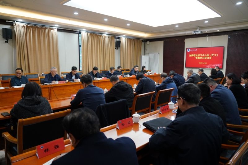 11月10日下午,学校党委书记张俊豪主持召开理论学习中心组(扩大)专题学习研讨会,深入学习党的二十届四中全会精神。中心组成员参加学习并作交流发言。学校党委委员、纪委委员,“十五五”总体规划及专项规划牵头单位主要负责人列席学习研讨会。