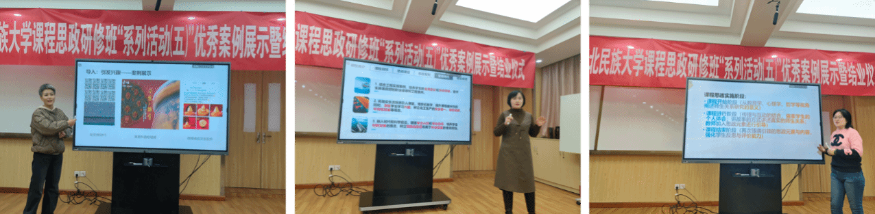 新闻传播学院白艳丽老师、化工学院王婷婷老师、音乐学院王艺涵老师等优秀学员代表结合自己所教授的课程,分别分享了自己和团队在课程思政建设相关的经验和做法。