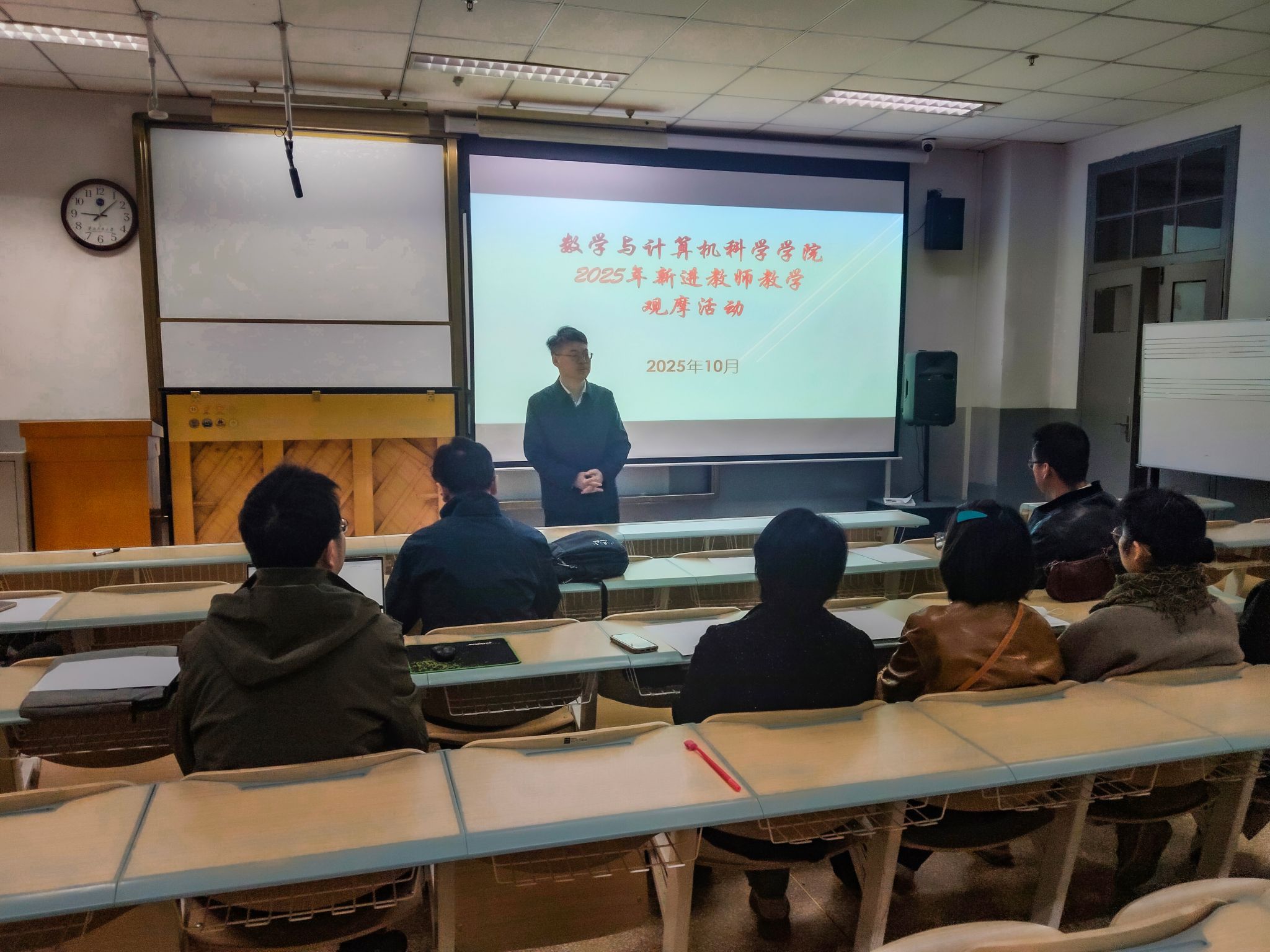 为进一步提升新进教师的教学能力与专业素养,帮助其快速适应高校教学岗位,夯实学院教学质量根基,10月18日早上9点,数学与计算机科学学院在西北新村校区文津楼108教室举行新进教师教学观摩课活动。学院领导、资深教授、教学督导组成员及新进教师参与了本次活动,共同搭建起教学经验交流与能力提升的优质平台。