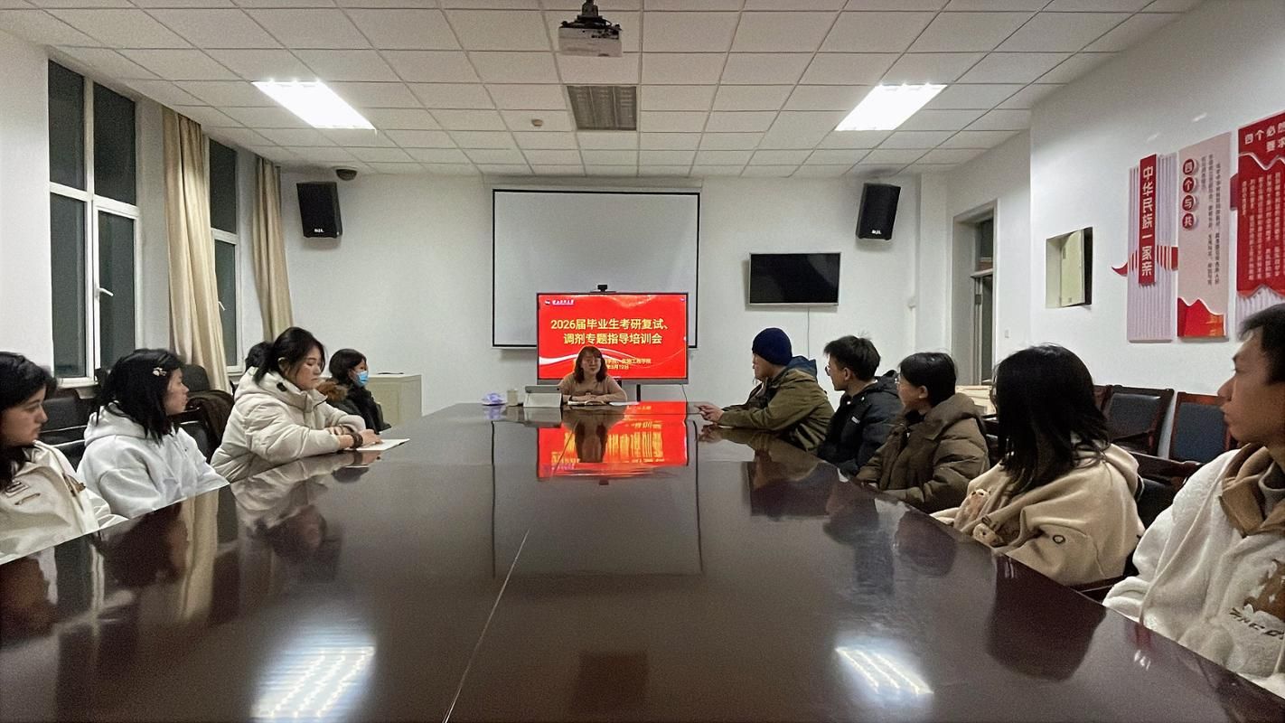 培训中,高丹丹重点强调科研衔接的重要性,指导学生主动联系意向导师、明确研究方向,系统梳理科研经历与专业基础,在复试中充分展现学术素养与科研潜力,切实提升复试竞争力。同时,围绕个人简历优化、科研经历提炼、英语能力提升、专业知识巩固、面试流程预判等关键内容,为学生提供全面、实用、可落地的备考策略,帮助学生精准发力、高效备考、顺利突围。此外,培训会还从面试礼仪、逻辑表达、心态调适等方面开展细节指导,全面提升学生综合应试能力,帮助学生缓解紧张情绪,以自信、从容、稳定的状态迎接复试挑战。