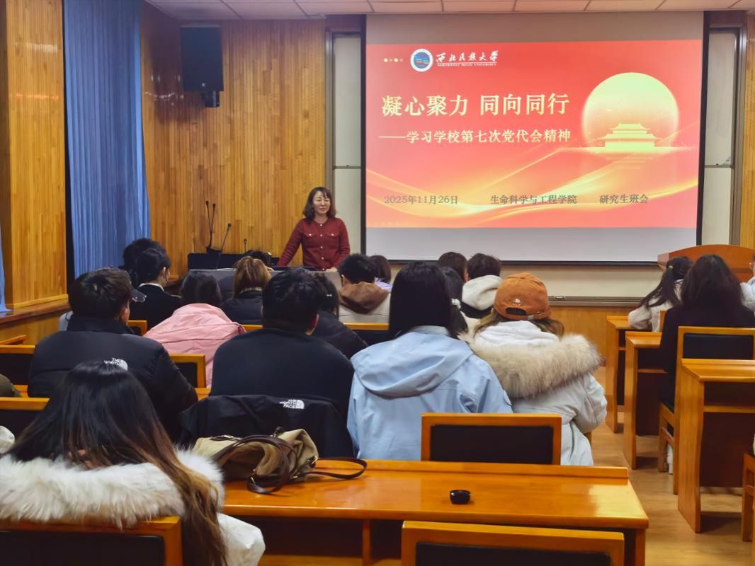 为进一步做好西北民族大学第七次党代会精神学习宣传工作,推动党代会精神落地生根,生命科学与工程学院9名与会党代表组成宣讲队,带着现场参加党代会的真切感受,深入师生一线,开展多场专题宣讲,以“面对面”交流、“心贴心”解读的方式,让党代会精神直达师生心坎,在全院掀起学习宣传贯彻热潮,凝聚起强院兴校的奋进力量。
