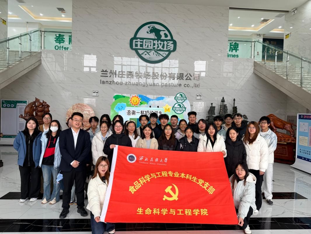 为深入推进在校学生职业观塑造,引导支部党员学生明晰食品行业职业发展方向、树立科学就业理念、提升就业竞争力,响应学校职业培育工作要求,3月27日下午,生命科学与工程学院食品科学与工程专业党支部组织党员学生,跟随校团委走进甘肃庄园牧业有限公司开展“职场体验”实践活动,以实地观摩、面对面交流的沉浸式形式,搭建校企对接桥梁,强化党员学生职业认知,为其职业生涯发展赋能。