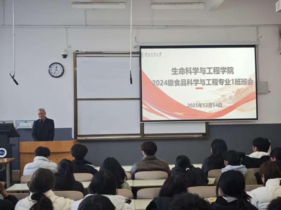 为深入学习贯彻党的二十届四中全会及学校第七次党代会精神,扎实推进学生思想引领、纪律建设与安全保障工作,12月14日,学校党委常委、纪委书记伍永章走进联系班级——生命科学与工程学院2024级食品科学与工程专业1班,全程参与并指导主题班会,与学生面对面深入交流,为青年学子成长成才赋能助力。