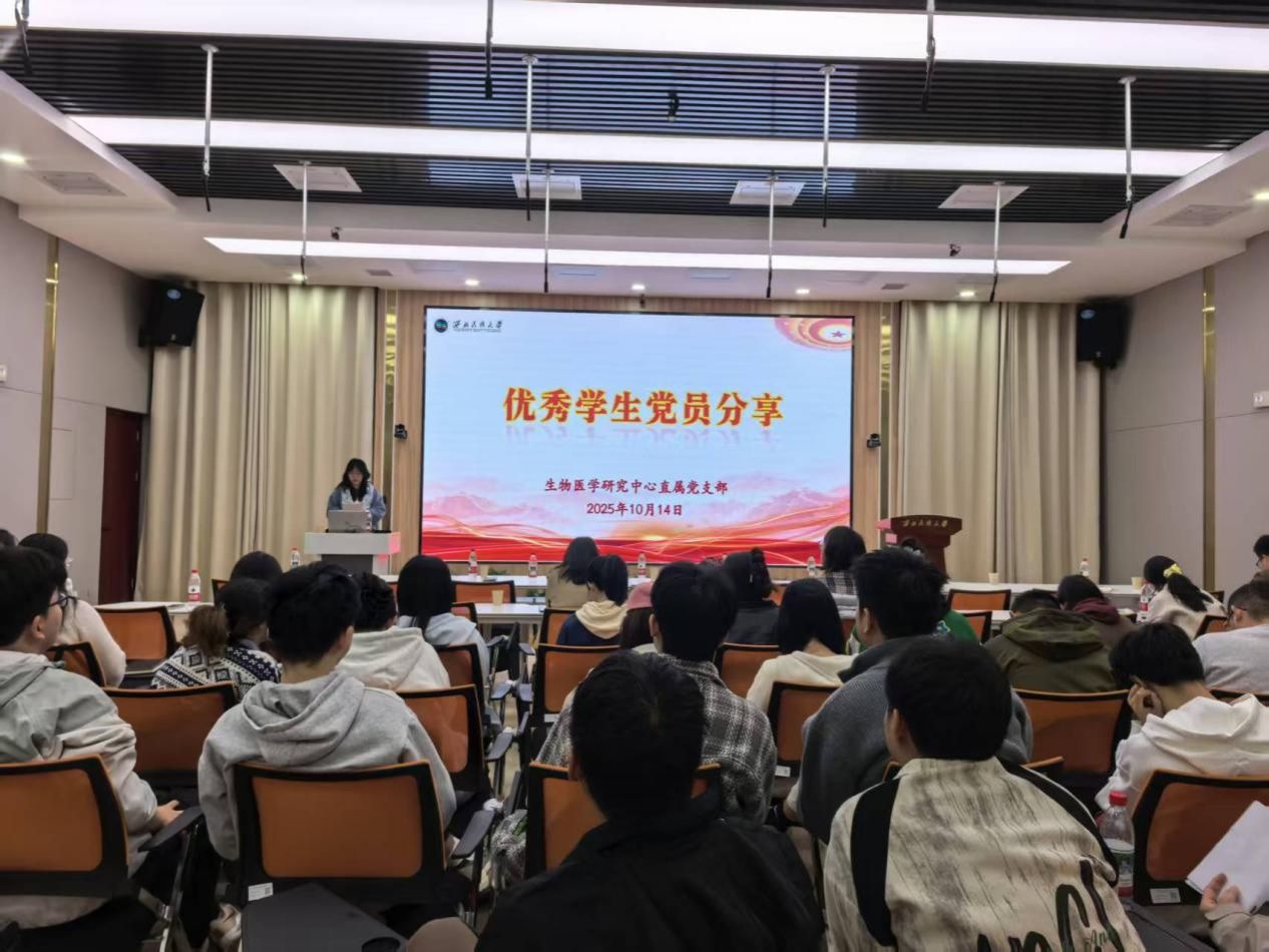 2025年10月14日上午,生物医学研究中心直属党支部在西北新村校区留学生公寓四楼会议室组织开展2025级新生入党启蒙教育,通过系统讲解党的基本知识、介绍入党流程并邀请优秀党员分享成长经历,引导新生端正入党动机,积极向党组织靠拢。