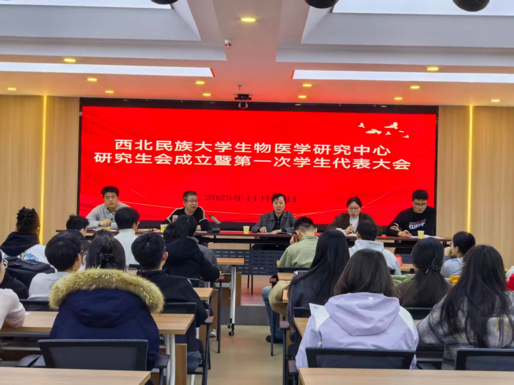 2025年11月16日下午,生物医学研究中心(以下简称“中心”)在文津楼107会议室召开研究生会成立大会暨第一次学生代表大会。学校党委研究生工作部部长、研究生院院长孙初锋,中心直属党支部书记哈玉梅出席大会并致辞。