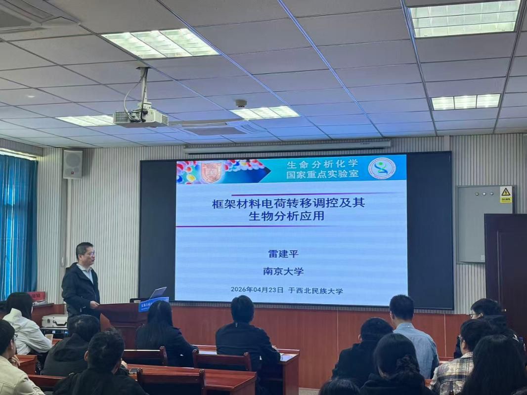 应学校邀请,南京大学生命分析化学全国重点实验室雷建平教授于4月23日上午在我校西北新村校区生物工程楼二楼会议室作了题为“框架材料电荷转移调控及其生物分析应用”的学术报告。生物工程学院、生物医学研究中心50余名师生参加。