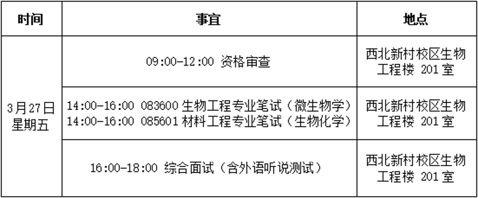 复试包括专业课考试、综合面试和同等学力加试,专业课考试科目和同等学力加试科目具体见西北民族大学生物医学研究中心“硕士学位点简介”,专业课考试和同等学力加试时间均为 2小时,满分100分。综合面试主要涉及专业素质和能力、综合素质和能力、外国语听说测试。